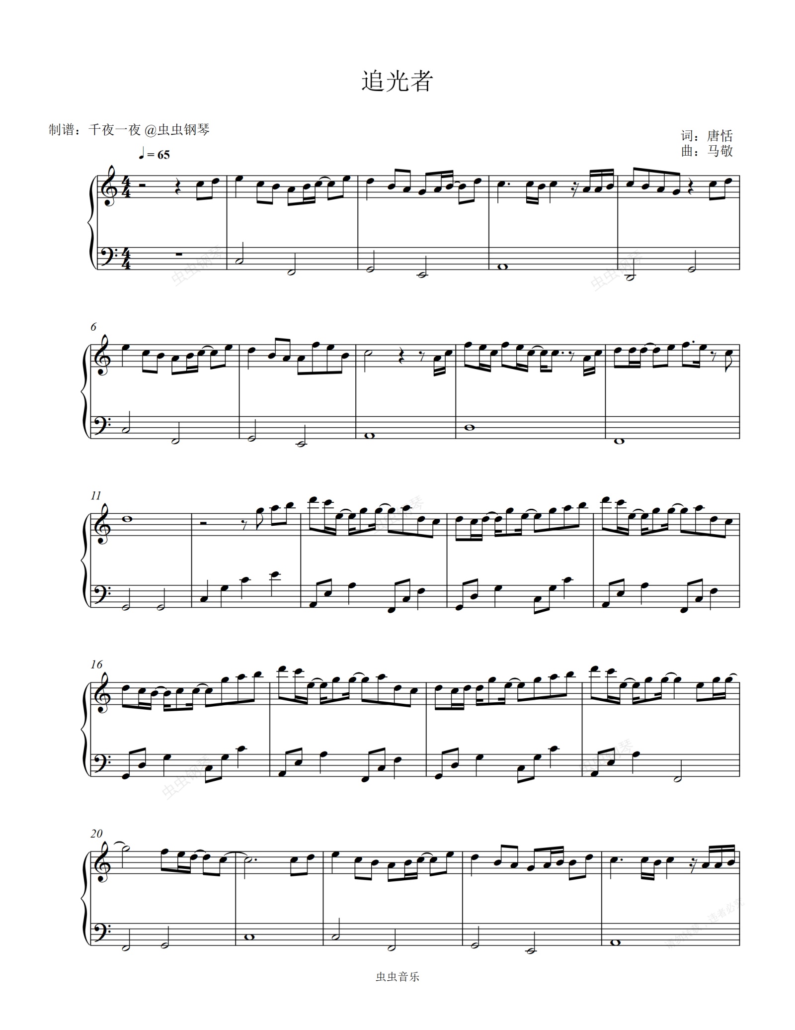 钢琴谱:【钢琴】夏至未至插曲《追光者》C调简单版