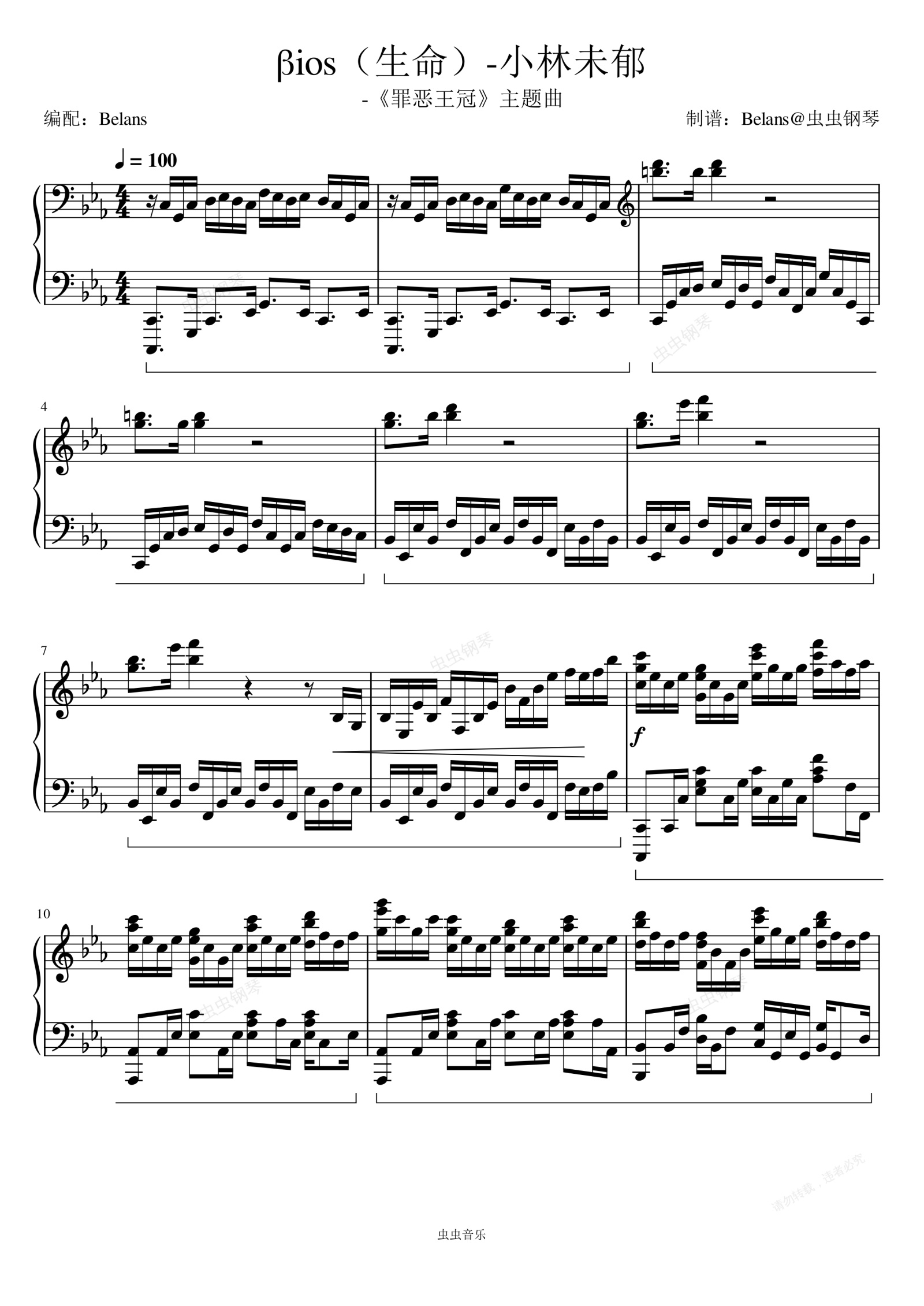 钢琴谱:βios-小林未郁 《罪恶王冠》插曲 超高还原版