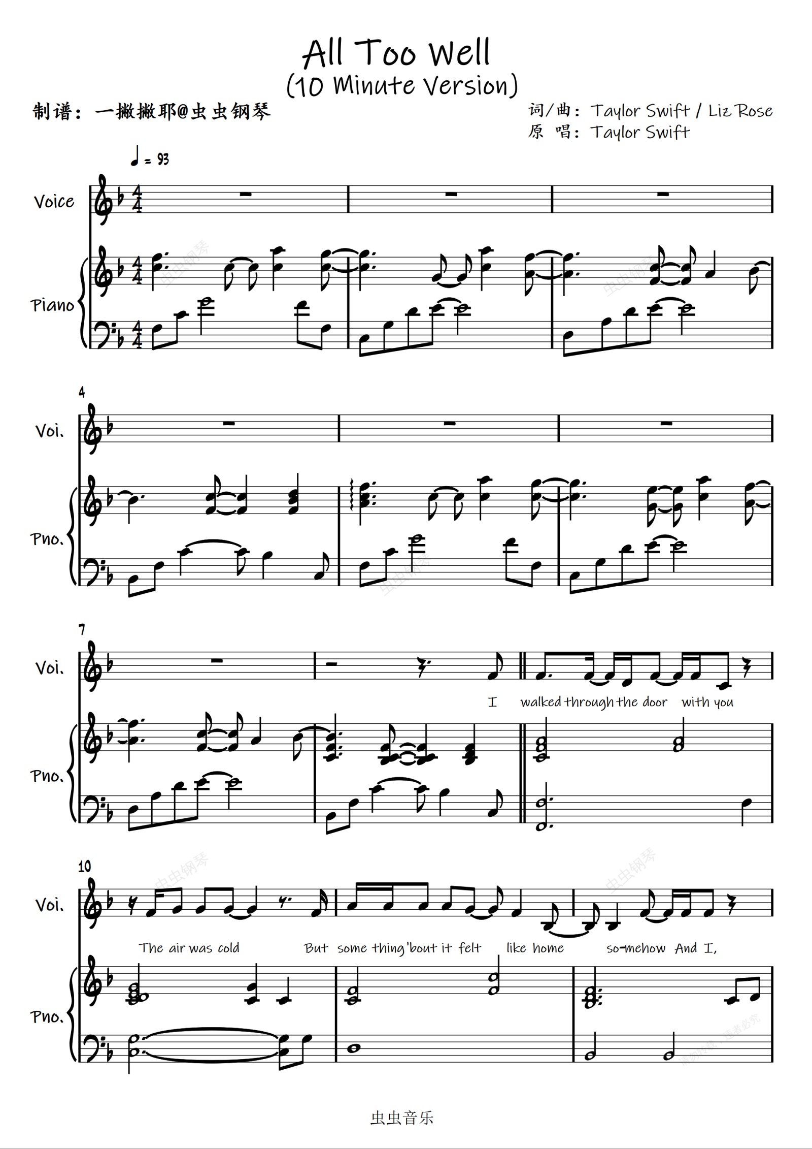 钢琴谱:男版弹唱谱《All Too Well 10 Min》Taylor Swift「一撇撇耶」