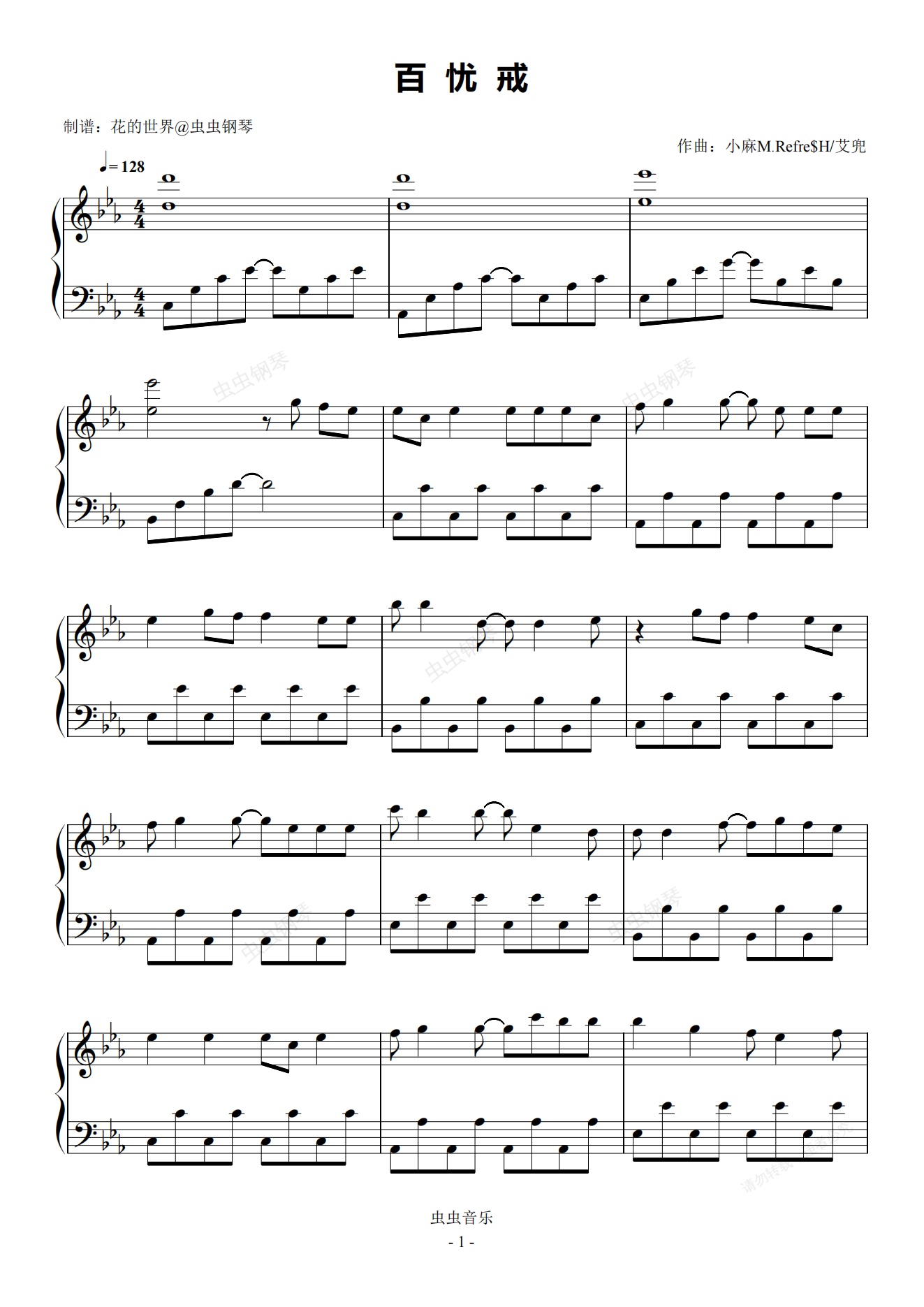 钢琴谱:百忧戒 原调简易版 时代少年团
