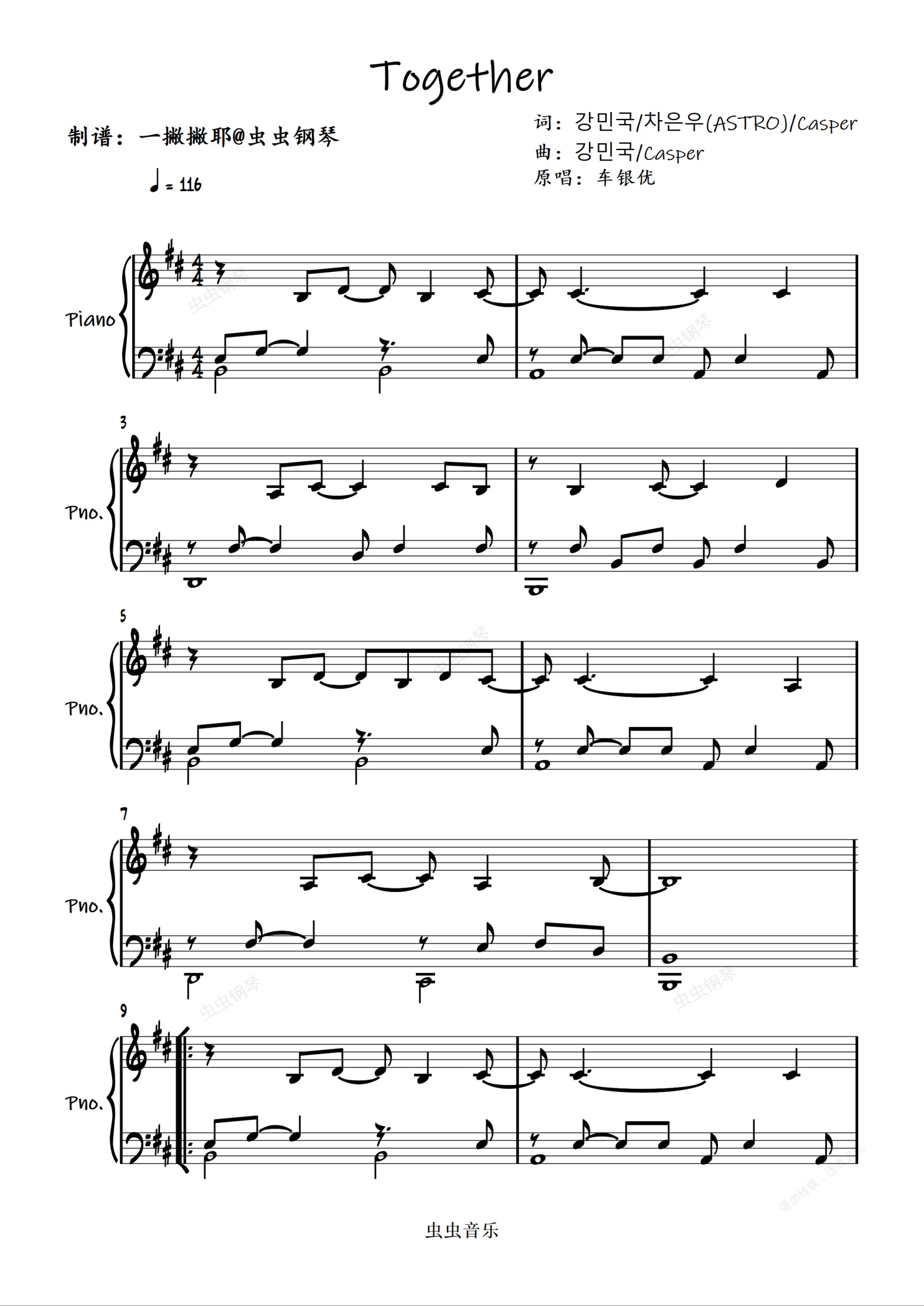 钢琴谱:Together【弹唱伴奏谱】车银优《顶级经纪人》OST「一撇撇耶」