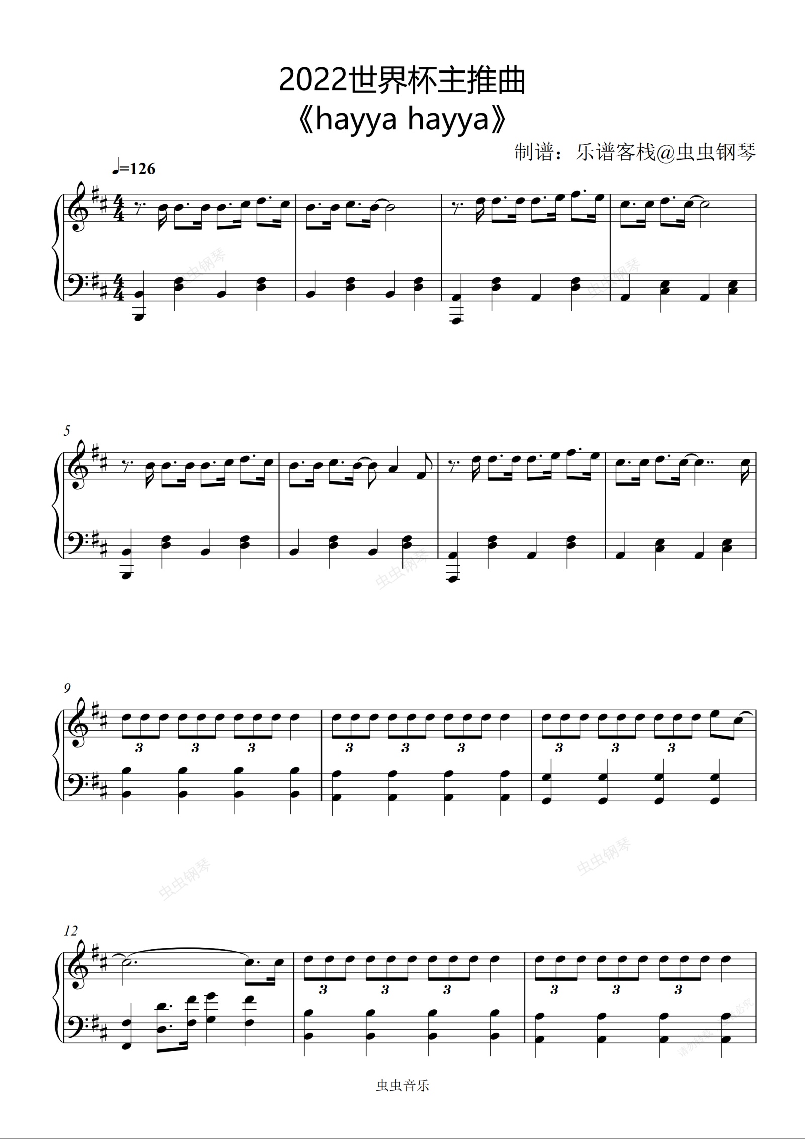 钢琴谱:2022世界杯推广曲《hayya hayya》