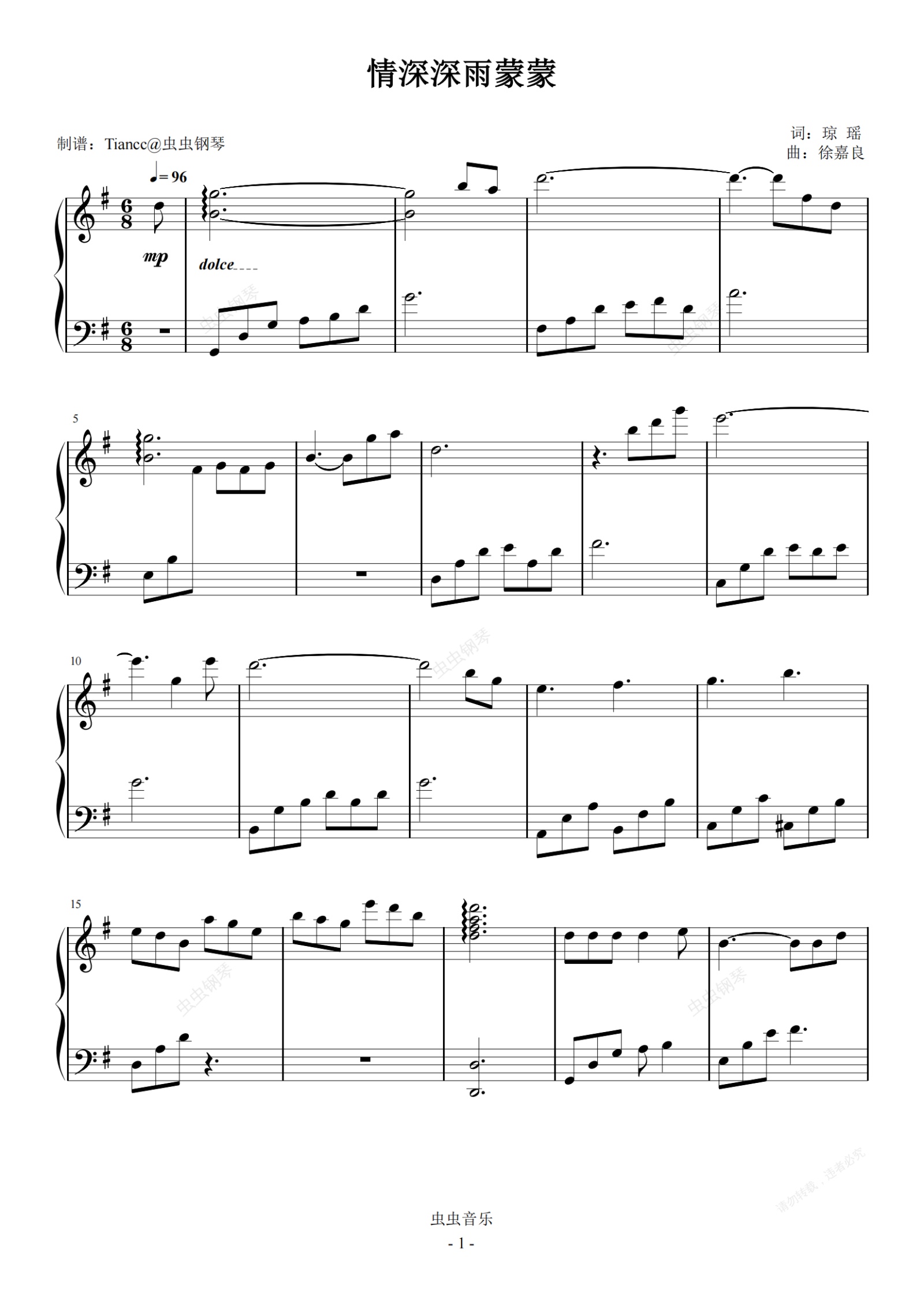 钢琴谱:《情深深雨蒙蒙》优化版,这个容易了,599难度~
