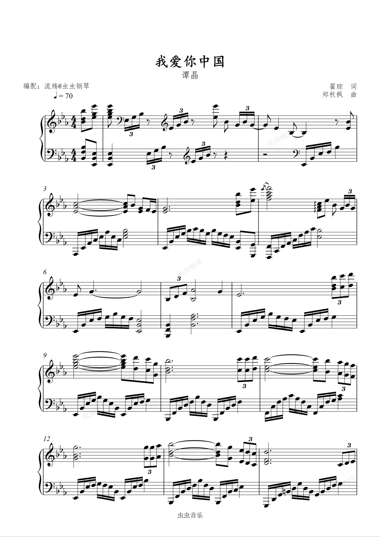您的位置: 首页 > 钢琴谱库 > 我爱你中国钢琴谱-谭晶