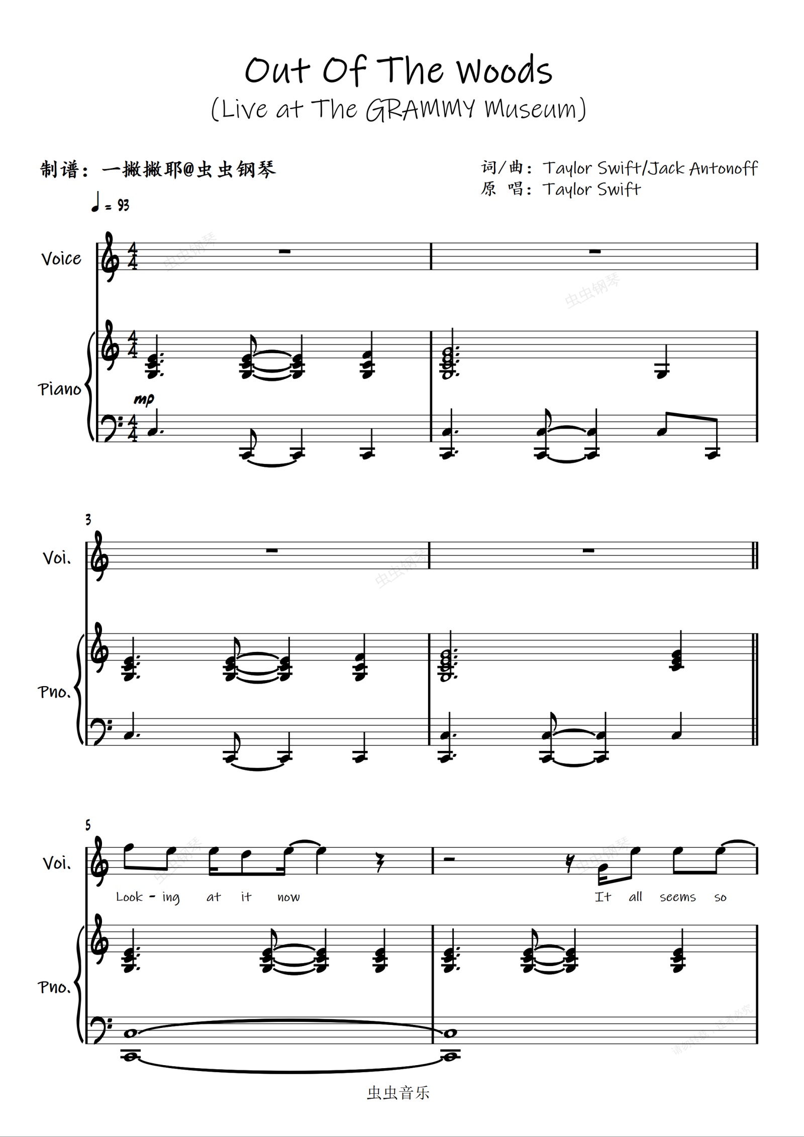 钢琴谱:极限还原弹唱《Out Of The Woods》格莱美博物馆现场 Taylor Swift「一撇撇耶」
