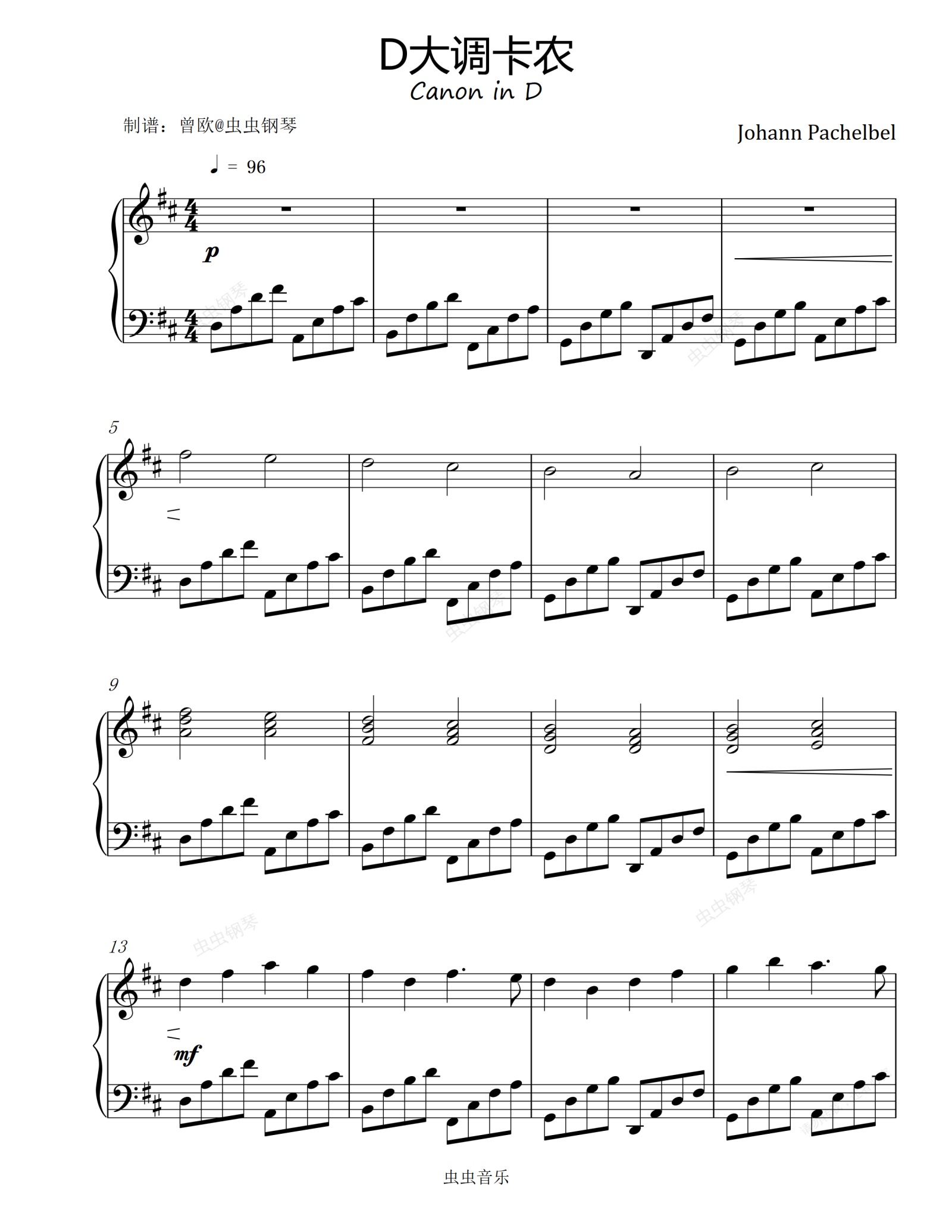 钢琴谱:《D大调卡农》 约翰·帕赫贝尔经典原版【免费福利】