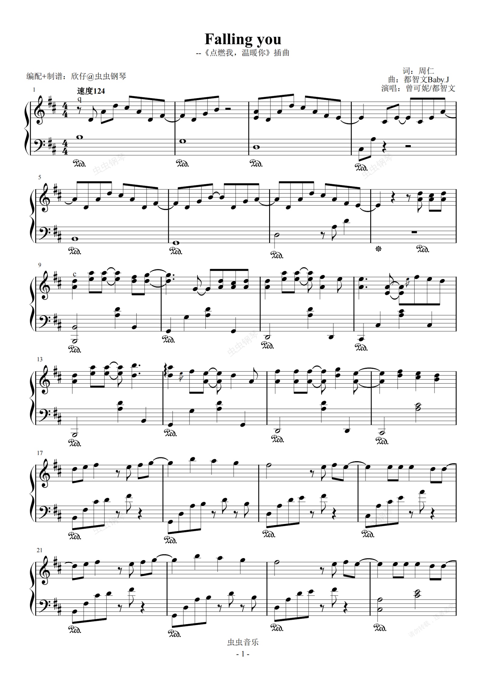 钢琴谱:D《Falling you》(《点燃我,温暖你》插曲、完整版)