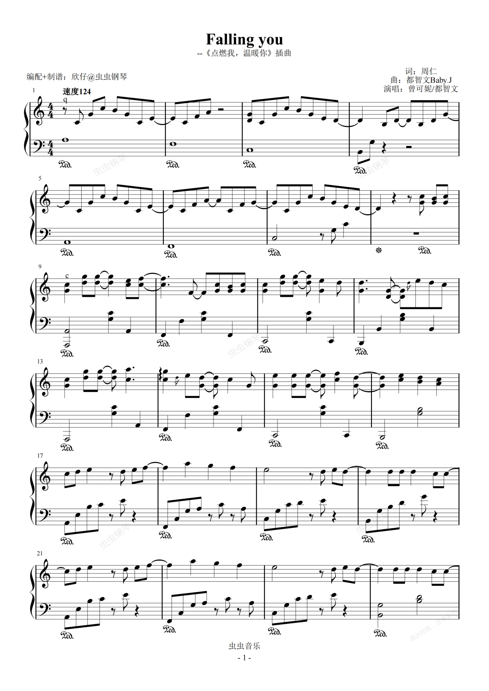 钢琴谱:C《Falling you》(《点燃我,温暖你》插曲、完整版)