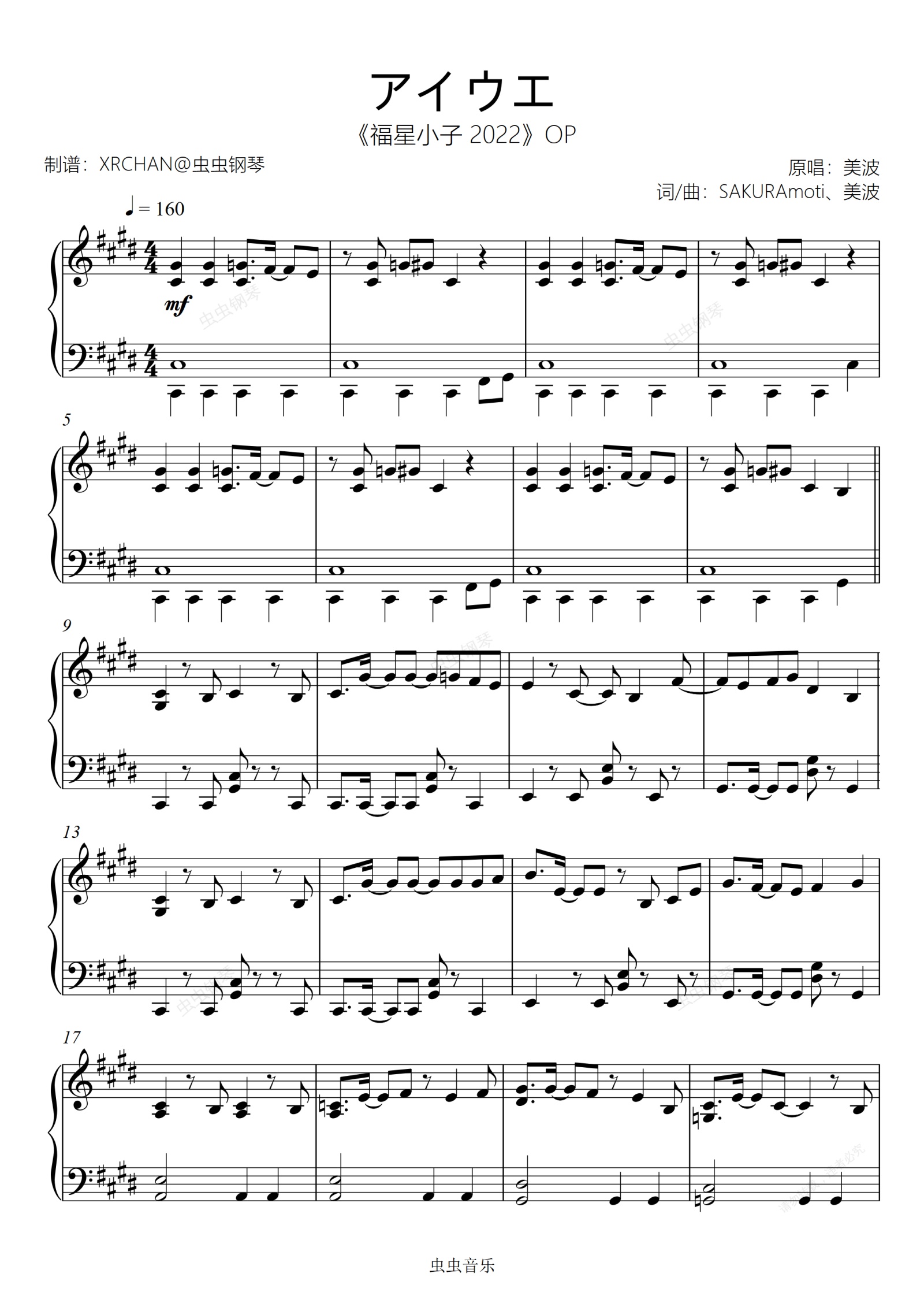 钢琴谱:《福星小子 2022》OP アイウエ 初级