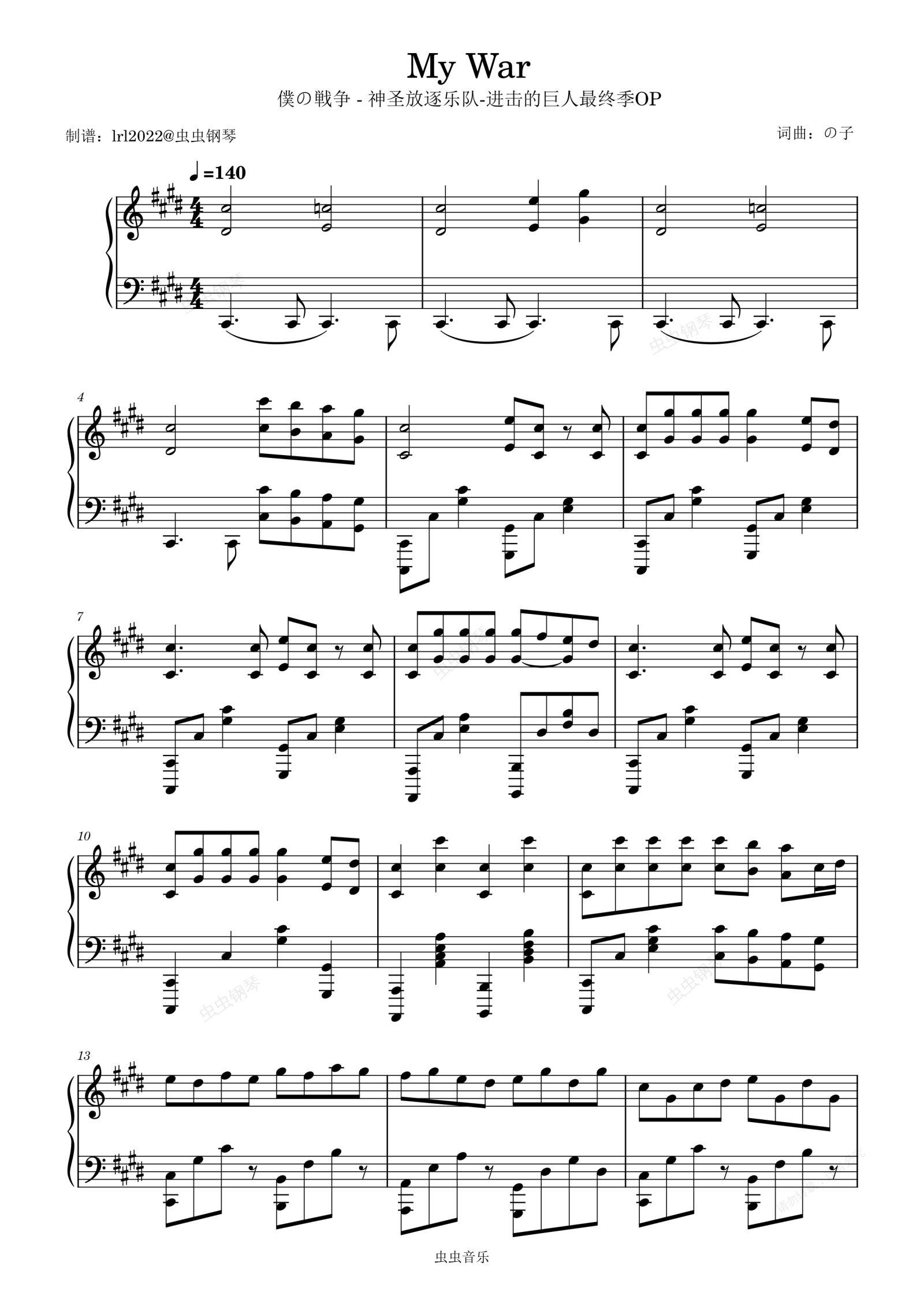 钢琴谱:僕の戦争-我的战争-My War-进击的巨人最终季 OP6