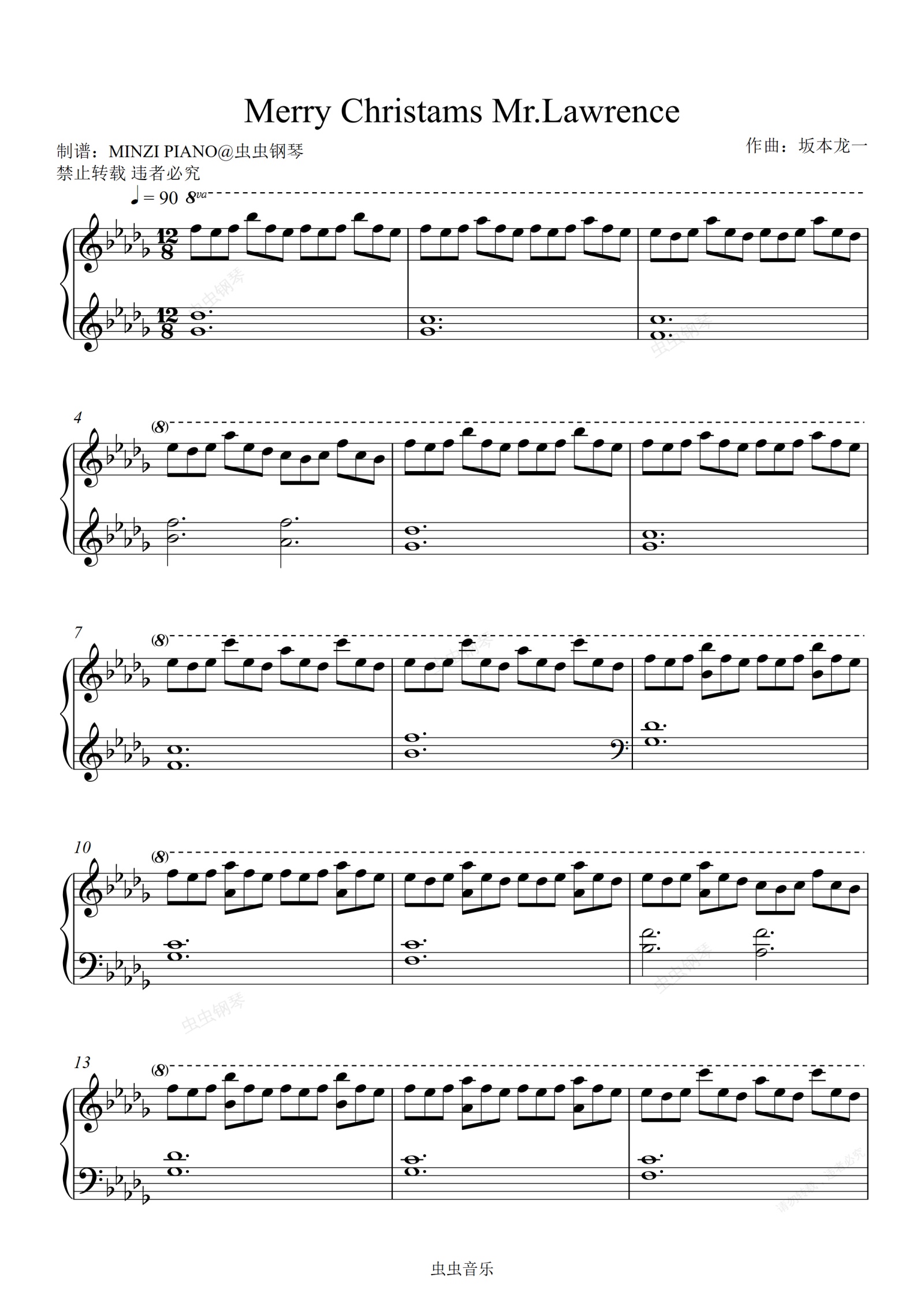 钢琴谱:Merry Christmas Mr.Lawrence-坂本龙一