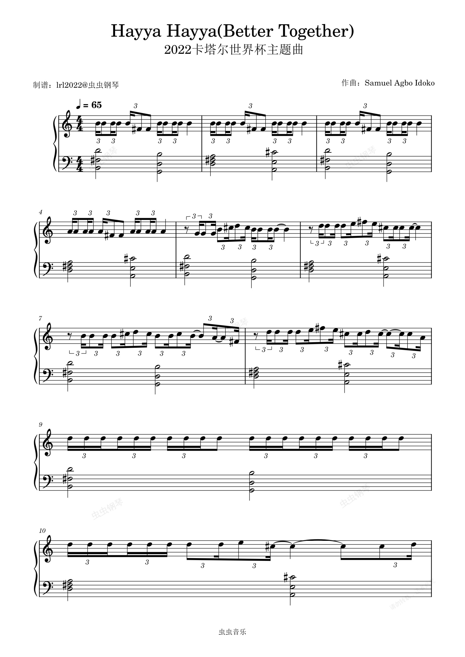 钢琴谱:Hayya Hayya(Better Together)-2022卡塔尔世界杯主题曲