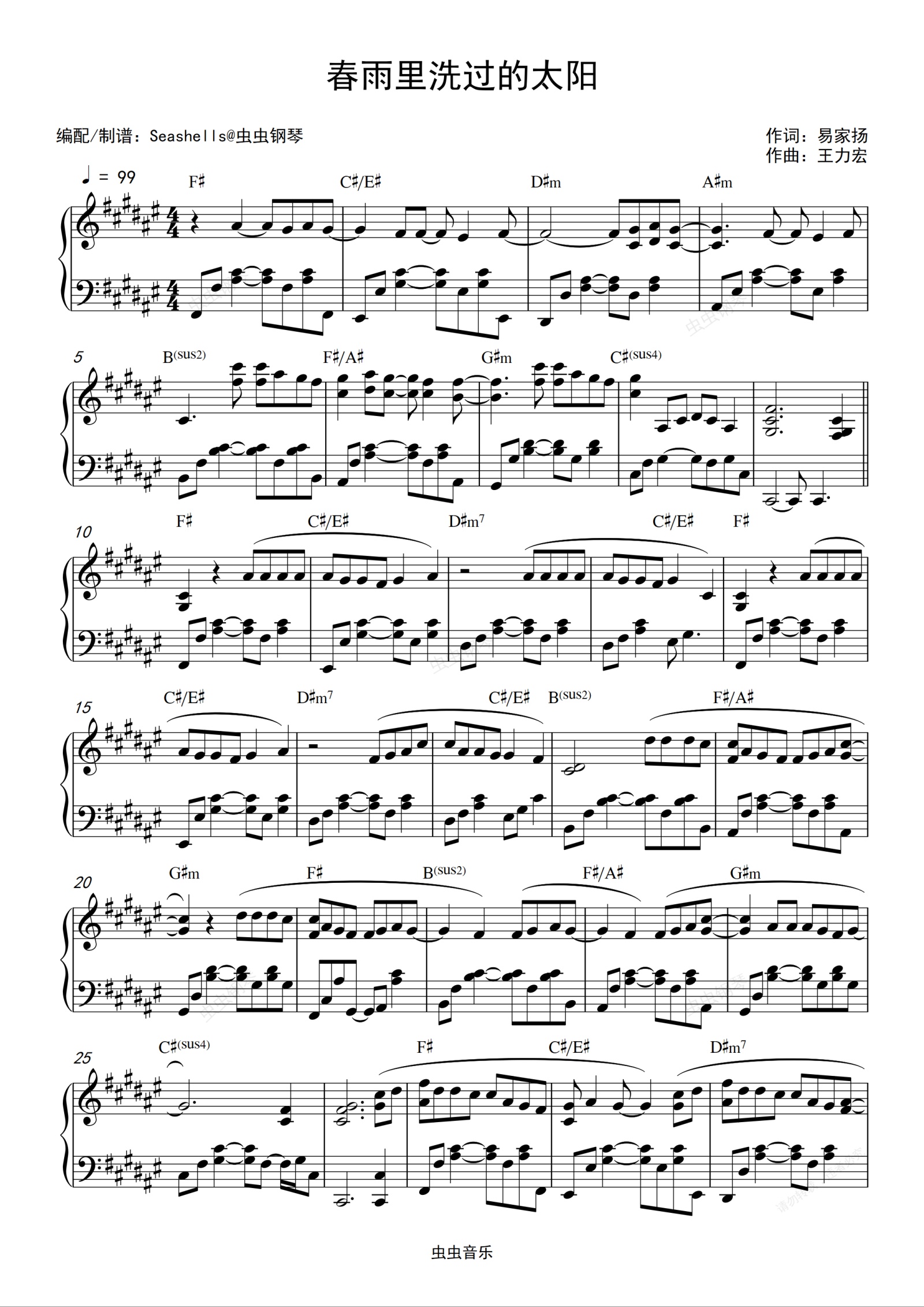 钢琴谱:王力宏-《春雨里洗过的太阳》精编钢琴独奏(升F调)