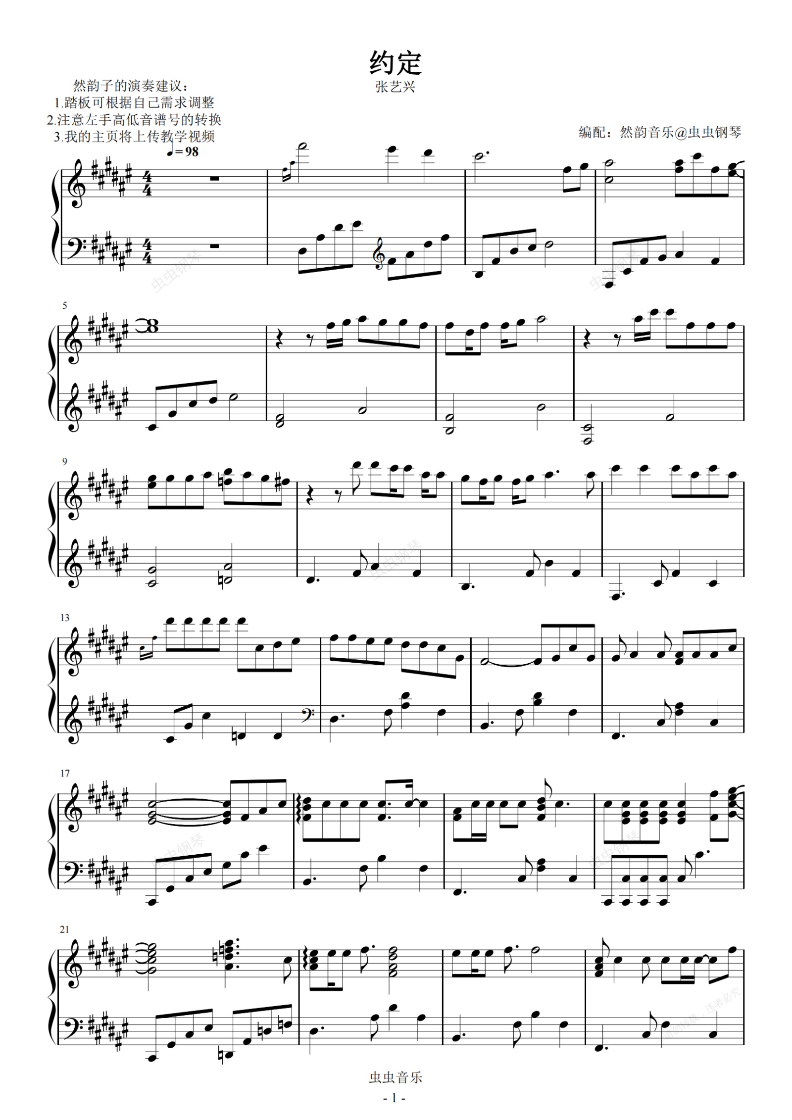 钢琴谱:【原调】约定-张艺兴 钢琴极限还原 然韵音乐编配