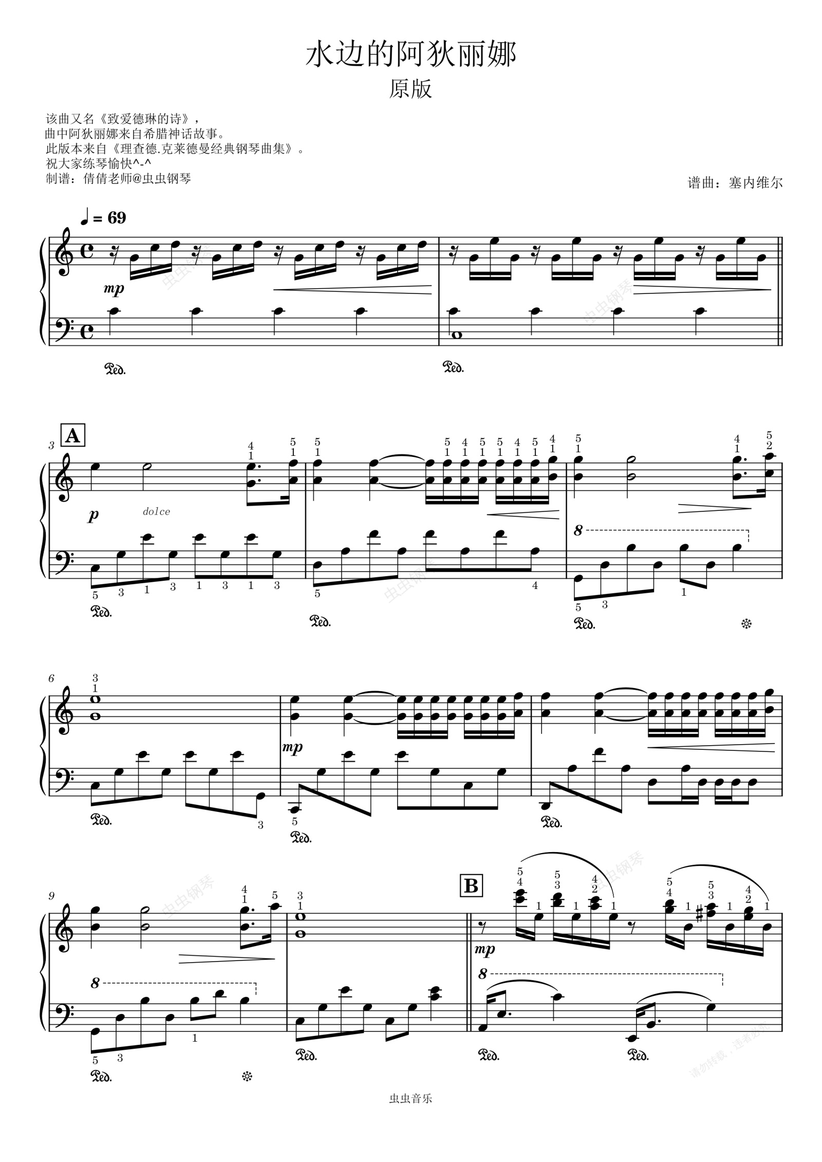 钢琴谱:水边的阿狄丽娜-原版-理查德克莱德曼
