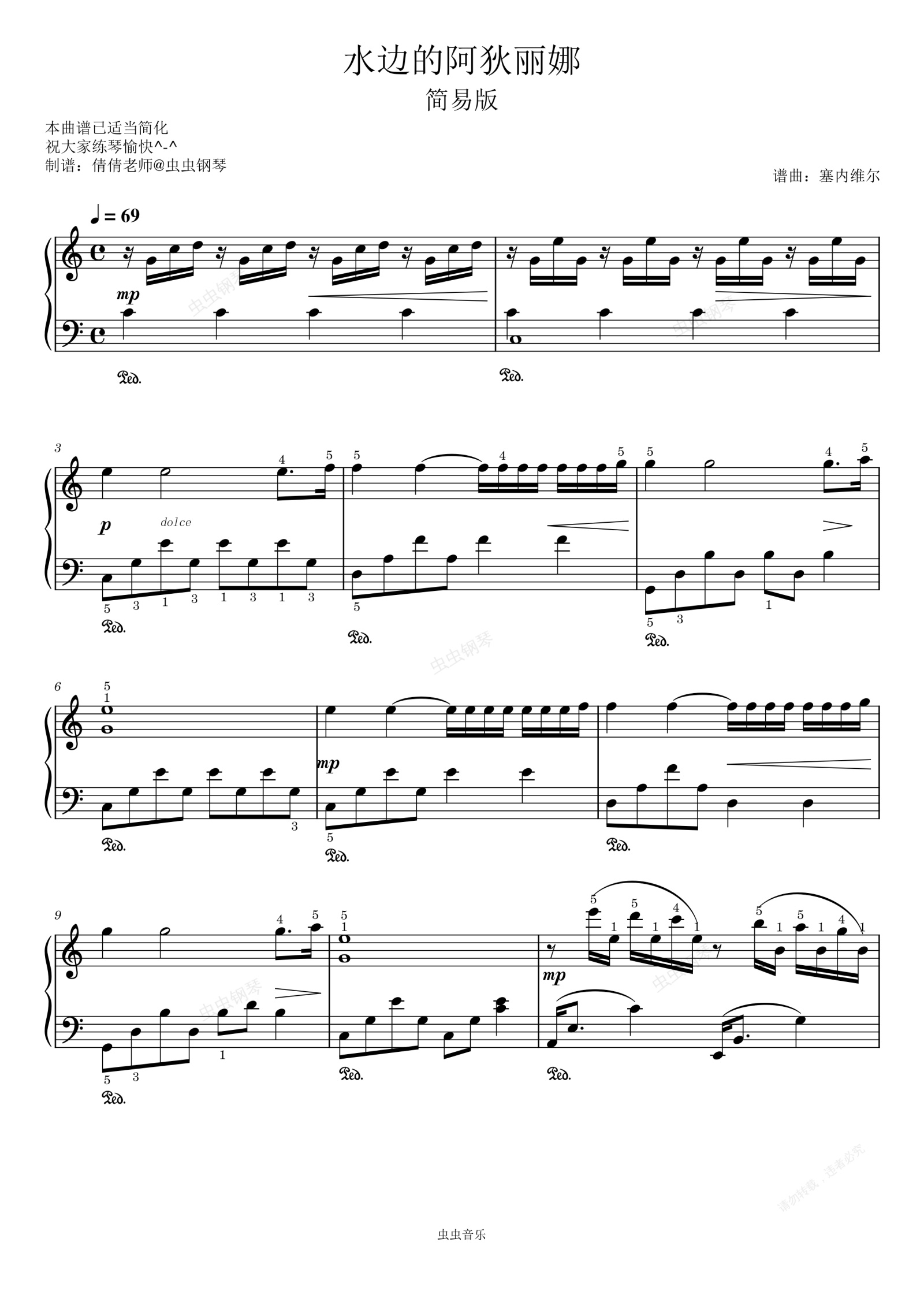 钢琴谱:水边的阿狄丽娜-C调简易版-理查德克莱德曼