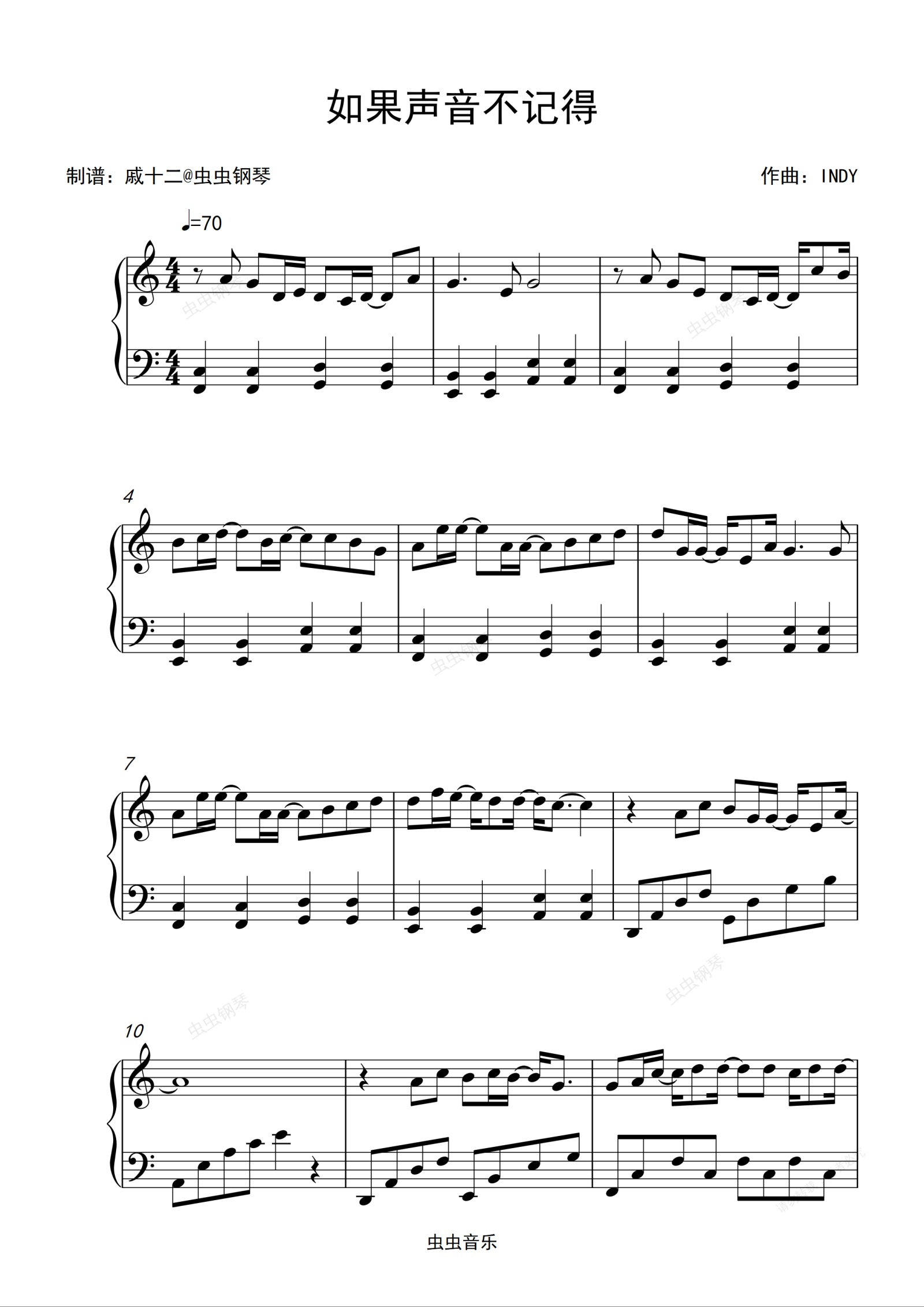 钢琴谱:如果声音不记得-C调简单版