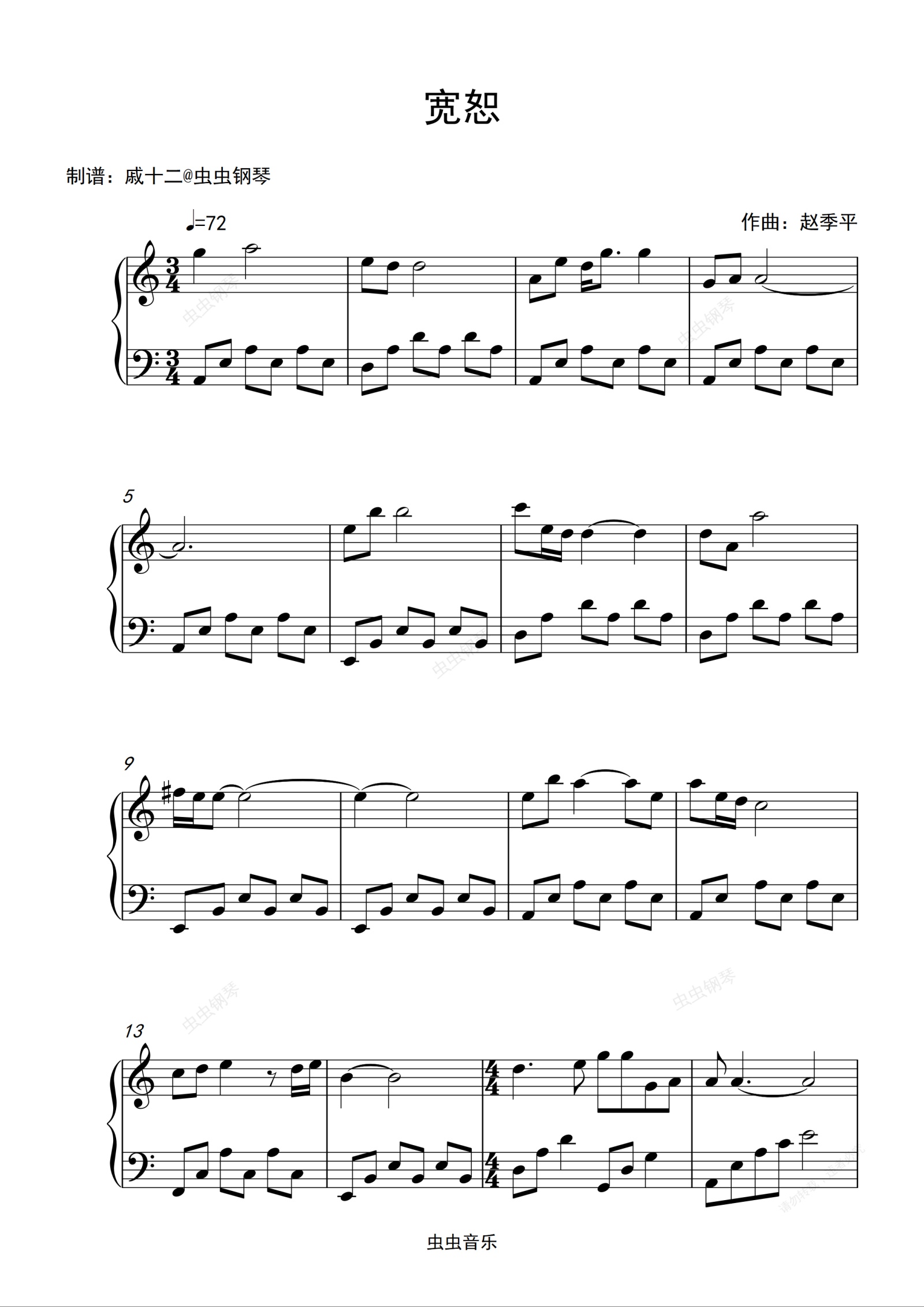 钢琴谱:宽恕《天龙八部》片尾曲-C调简单版