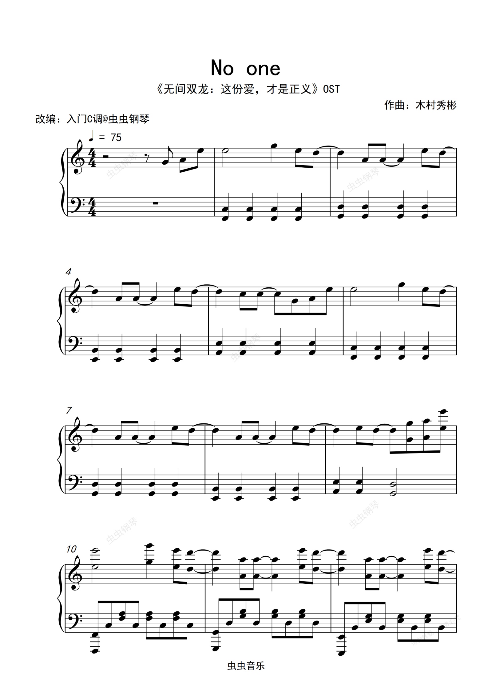 钢琴谱:日剧《无间双龙》BGM《No one》入门C调简单版