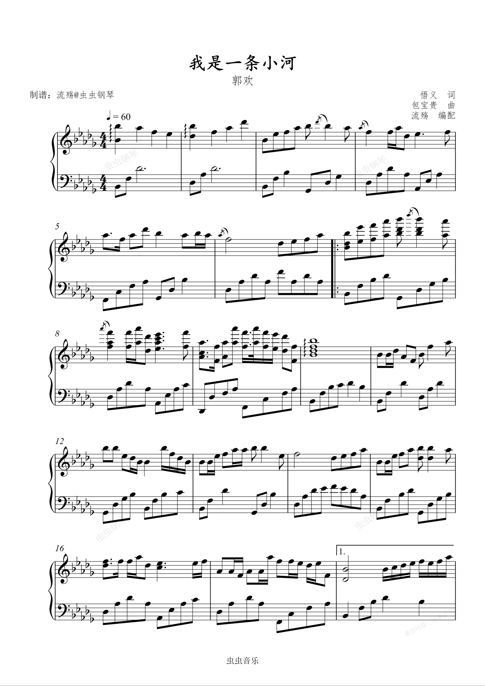 您的位置: 首页 > 钢琴谱库 > 我是一条小河钢琴谱-郭欢