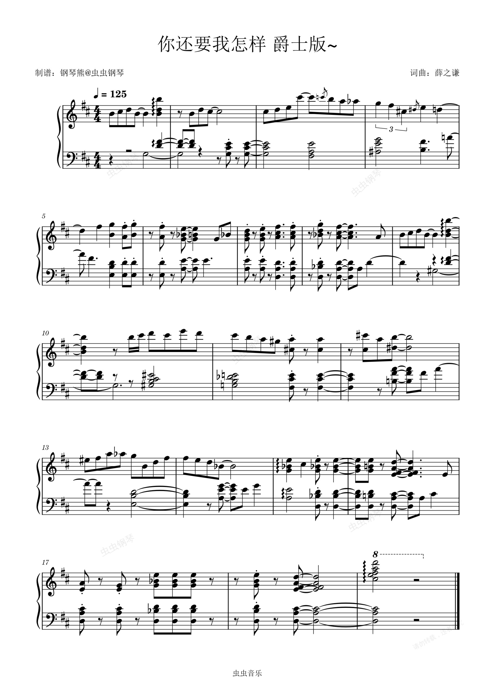 钢琴谱:《你还要我怎样》 爵士版~超好听!!!