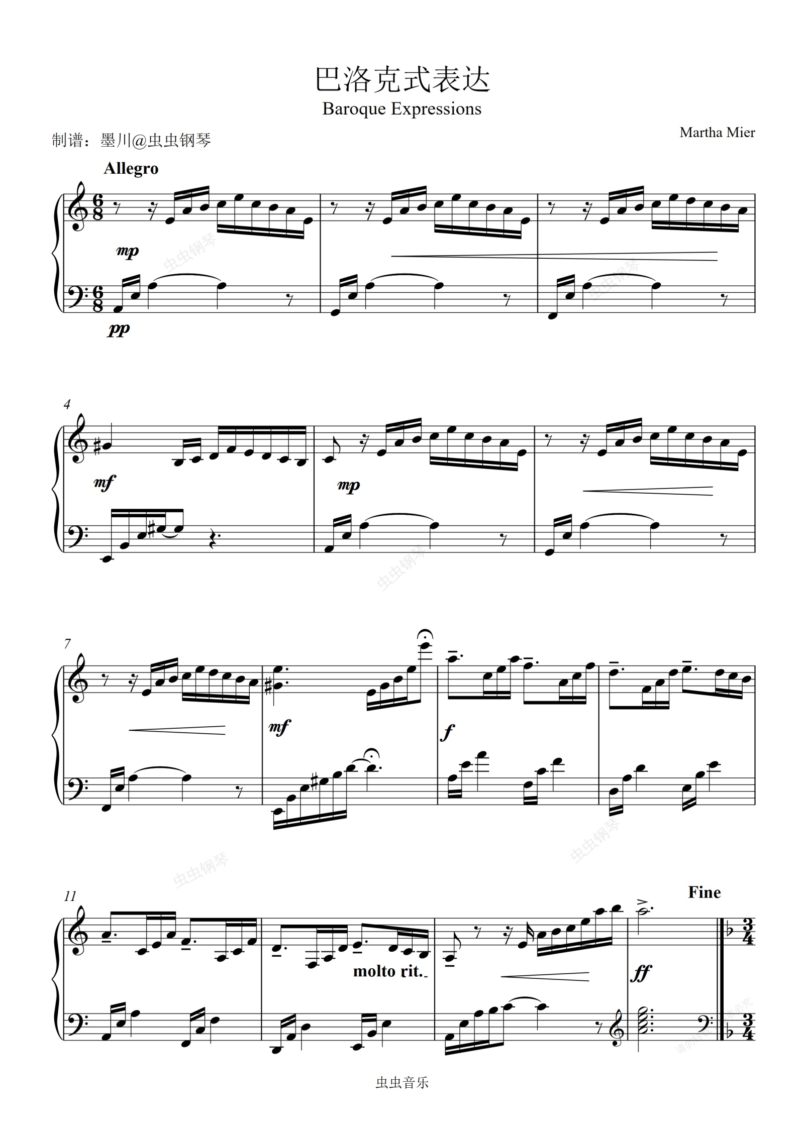 钢琴谱:2-4级钢琴曲—巴洛克式表达—Martha Mier