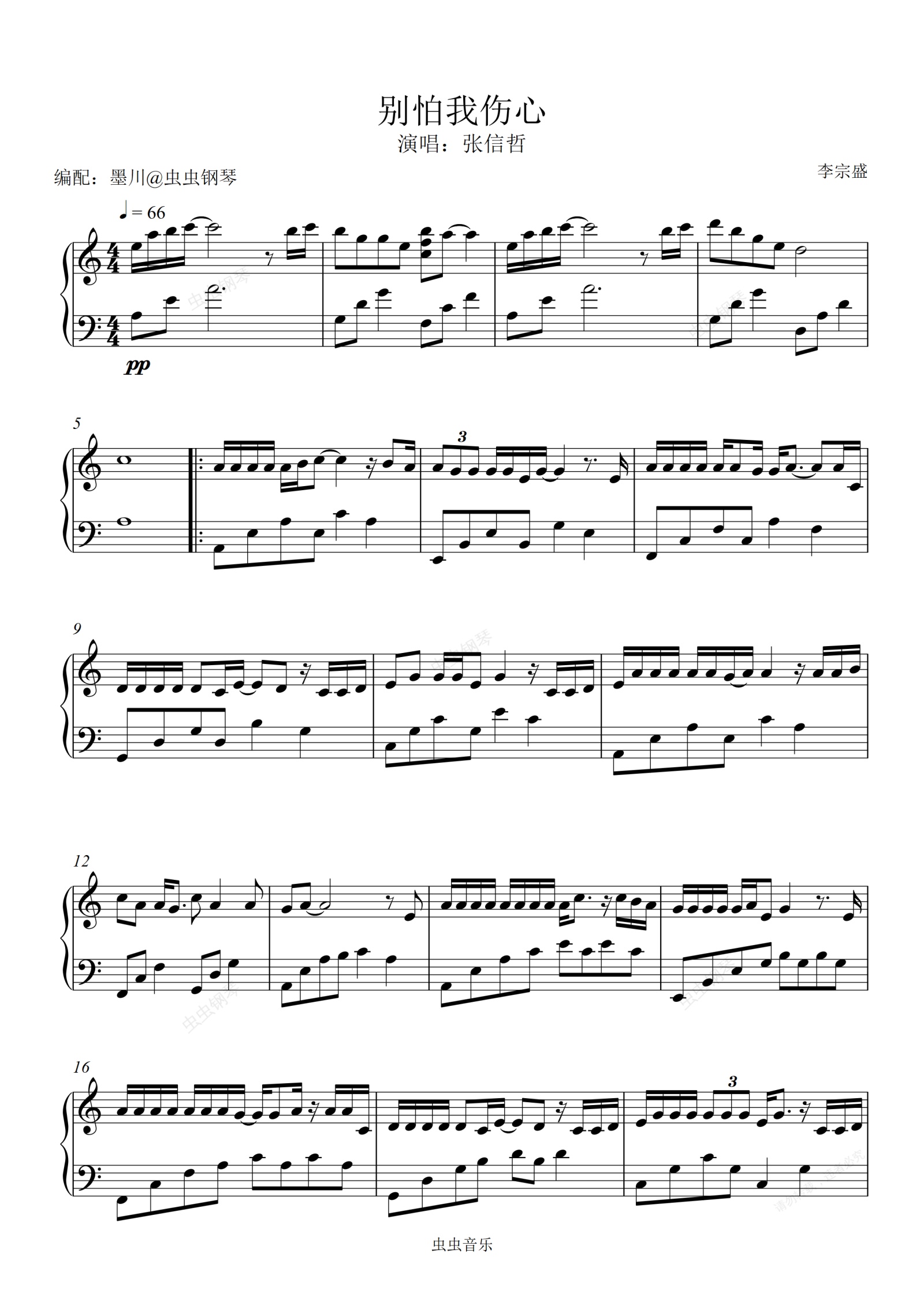 钢琴谱:别怕我伤心—张信哲—C调编配