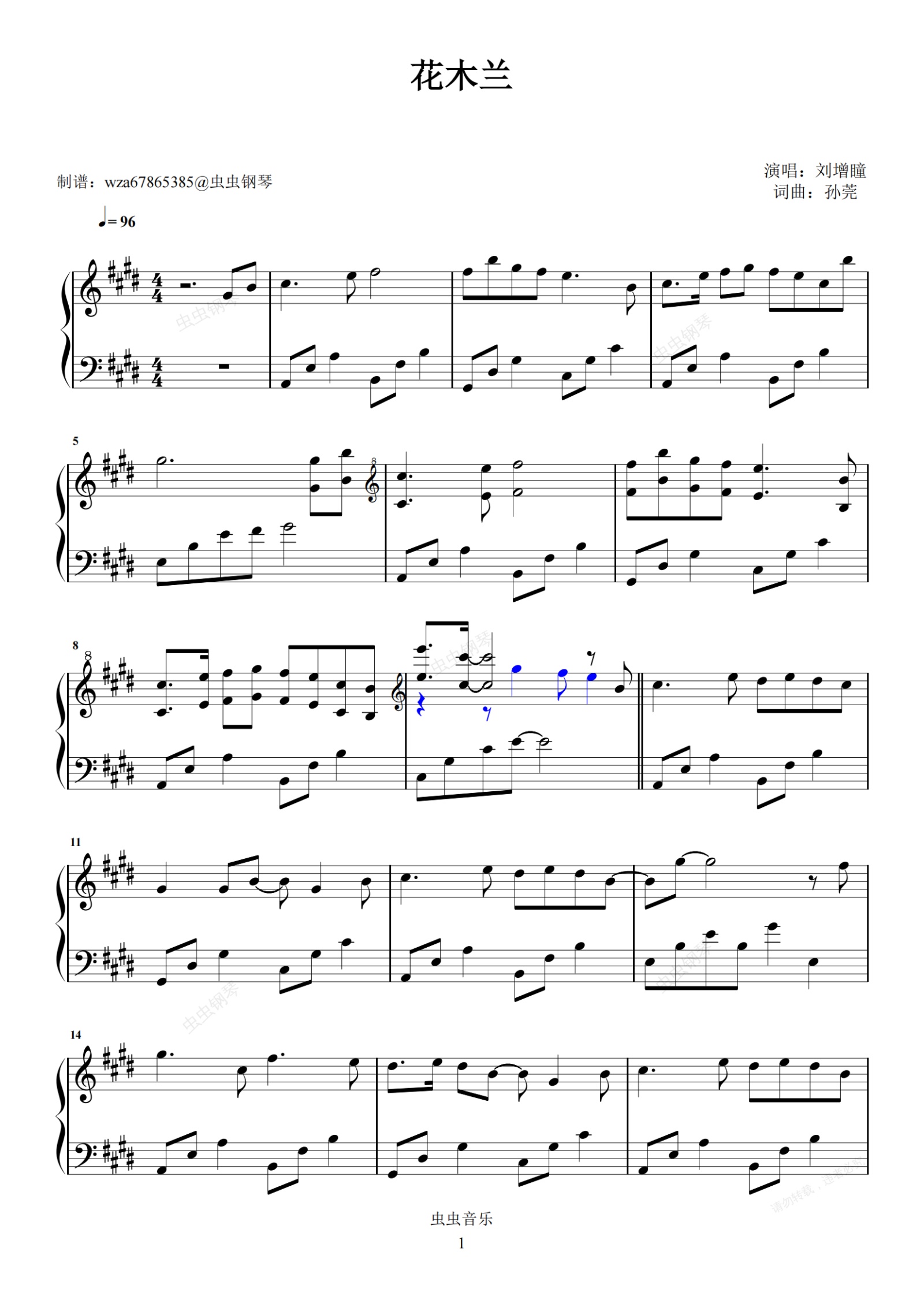 钢琴谱:花木兰