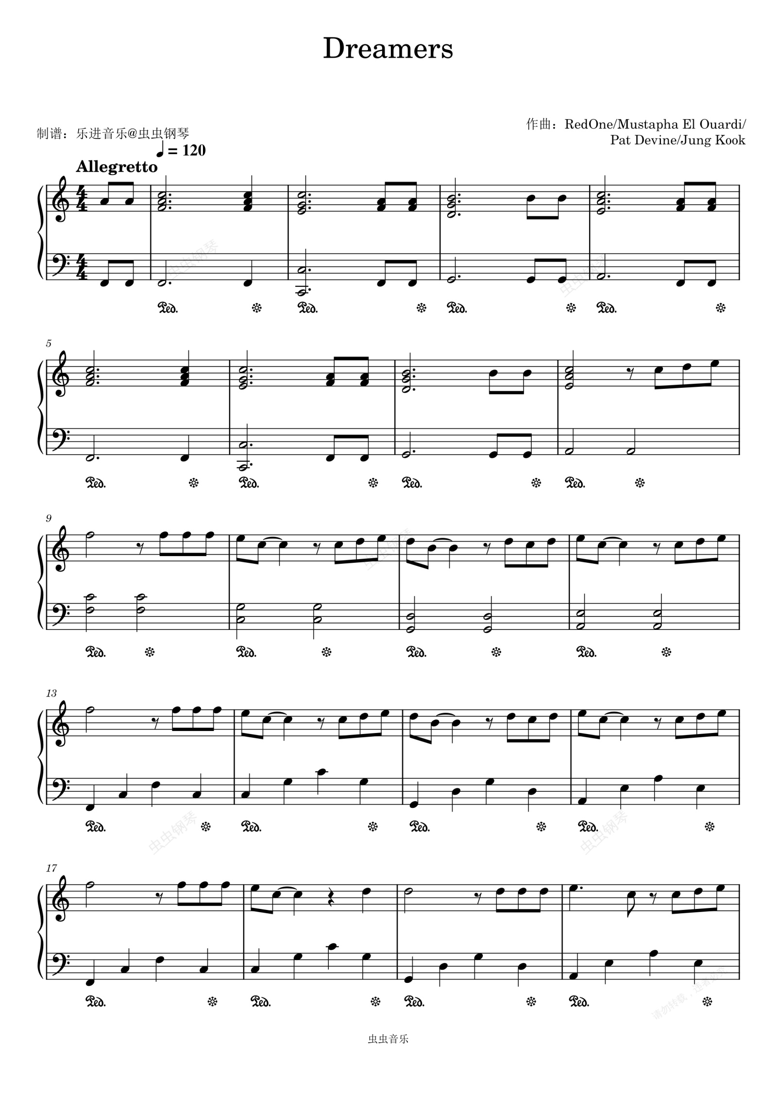 钢琴谱:《Dreamers》简易版拜厄程度,卡塔尔世界杯主题曲