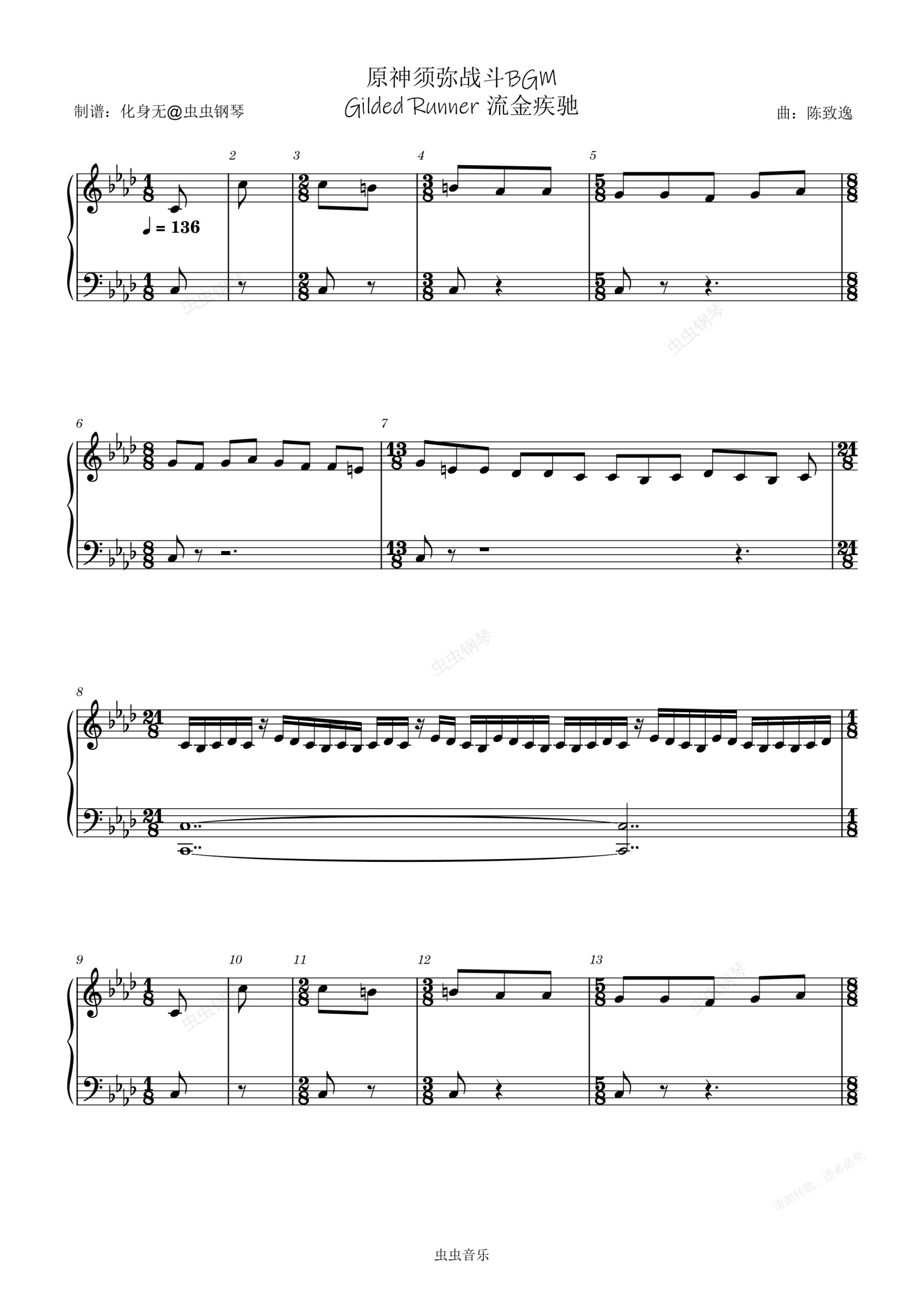 钢琴谱:流金疾驰 原神须弥战斗音乐BGM Gilded Runner