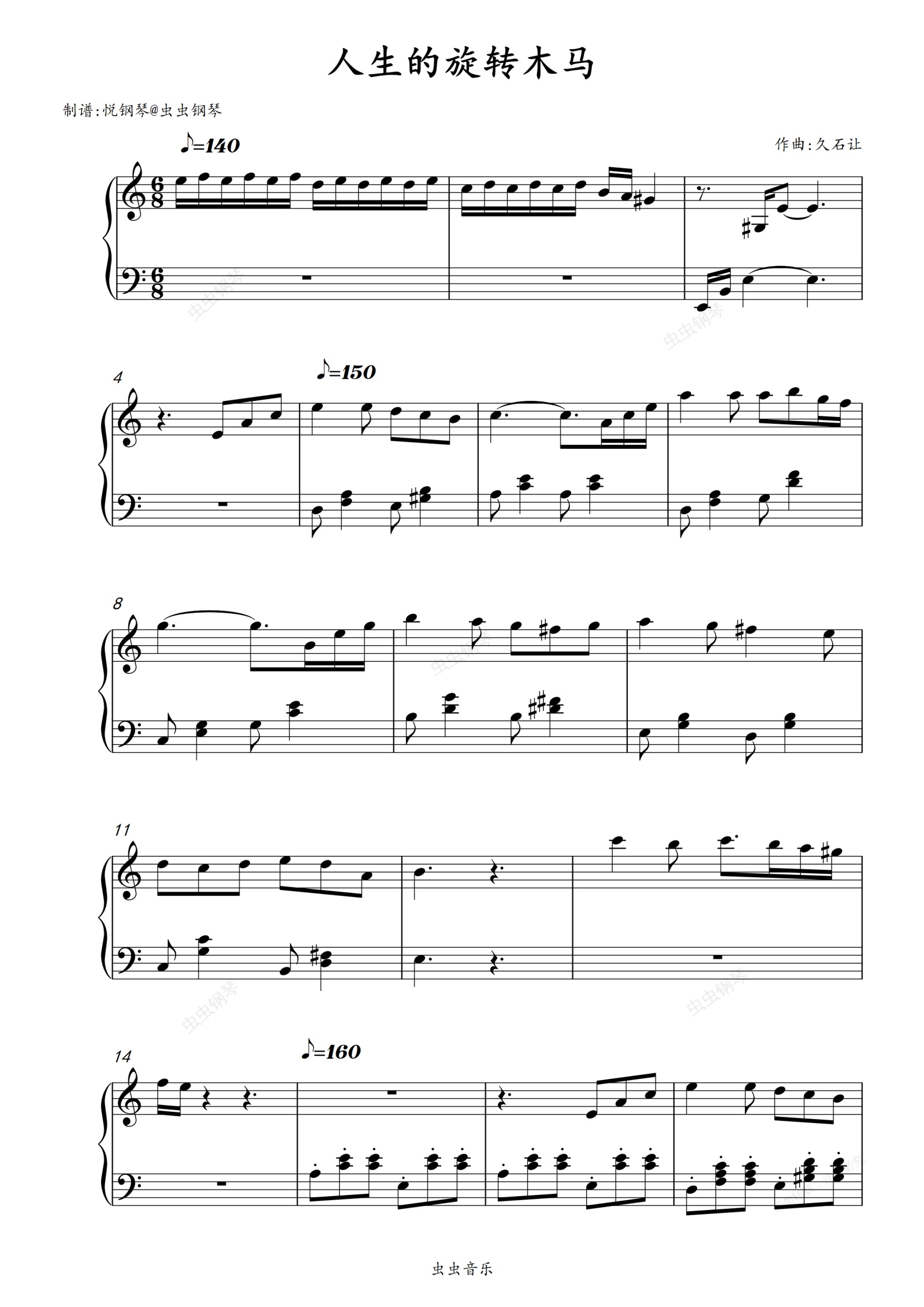 钢琴谱:人生的旋转木马(免费乐谱) 久石让