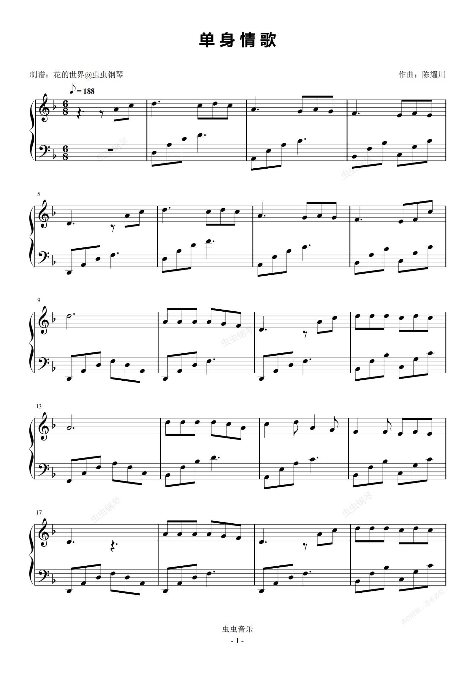 钢琴谱:单身情歌 原调简易版 林志炫 流行经典