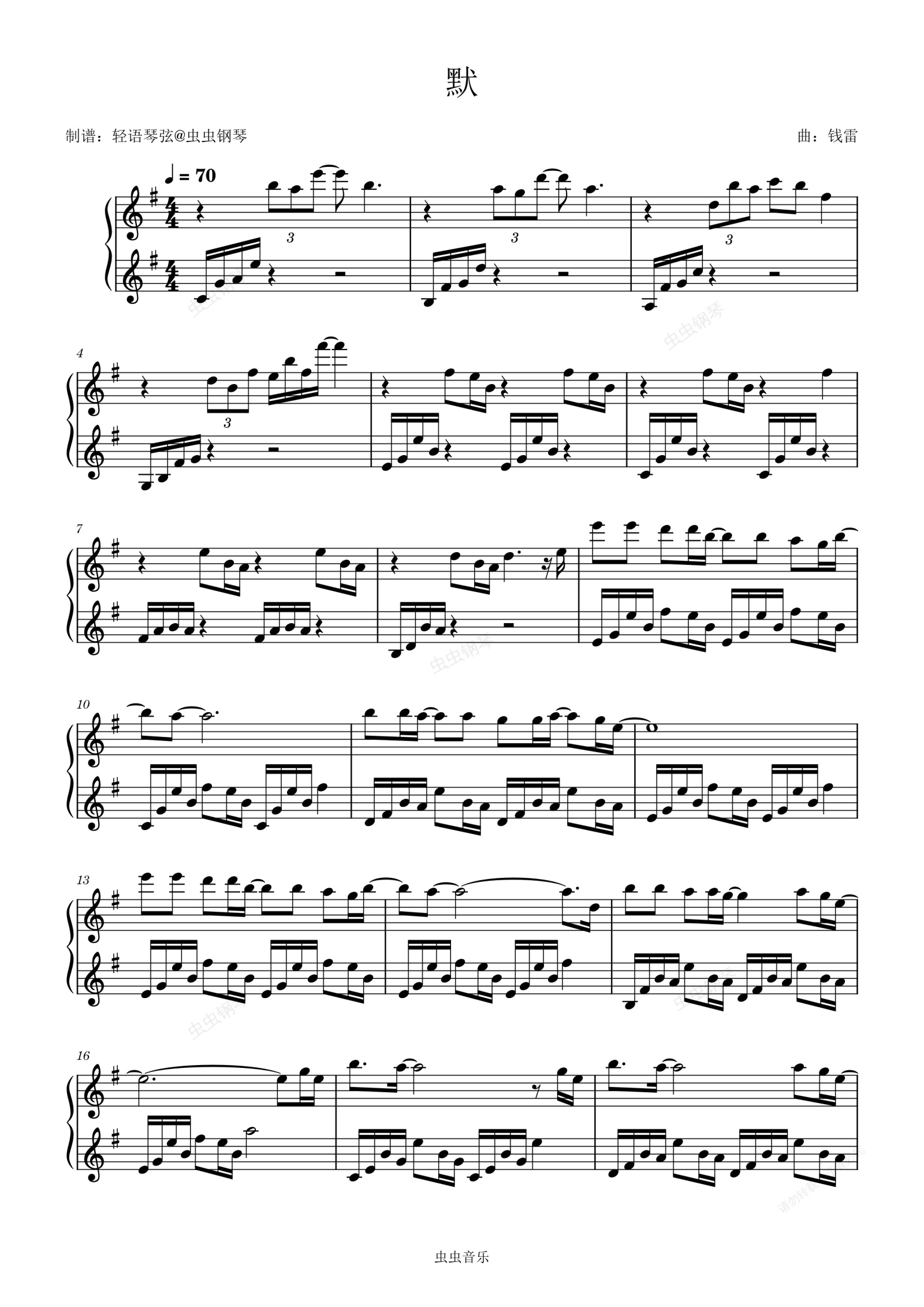 钢琴谱:默 唯美完整版