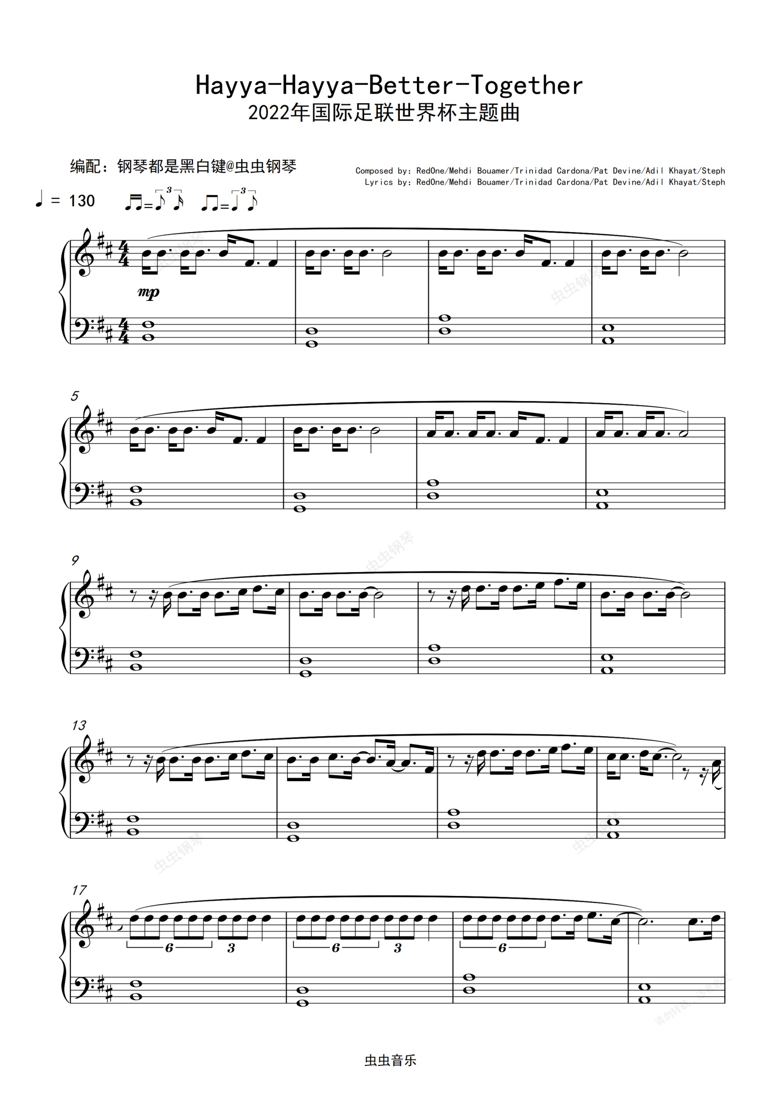 钢琴谱:Hayya-Hayya-Better-Together-2022年国际足联世界杯主题曲 [高还原钢琴演奏版]