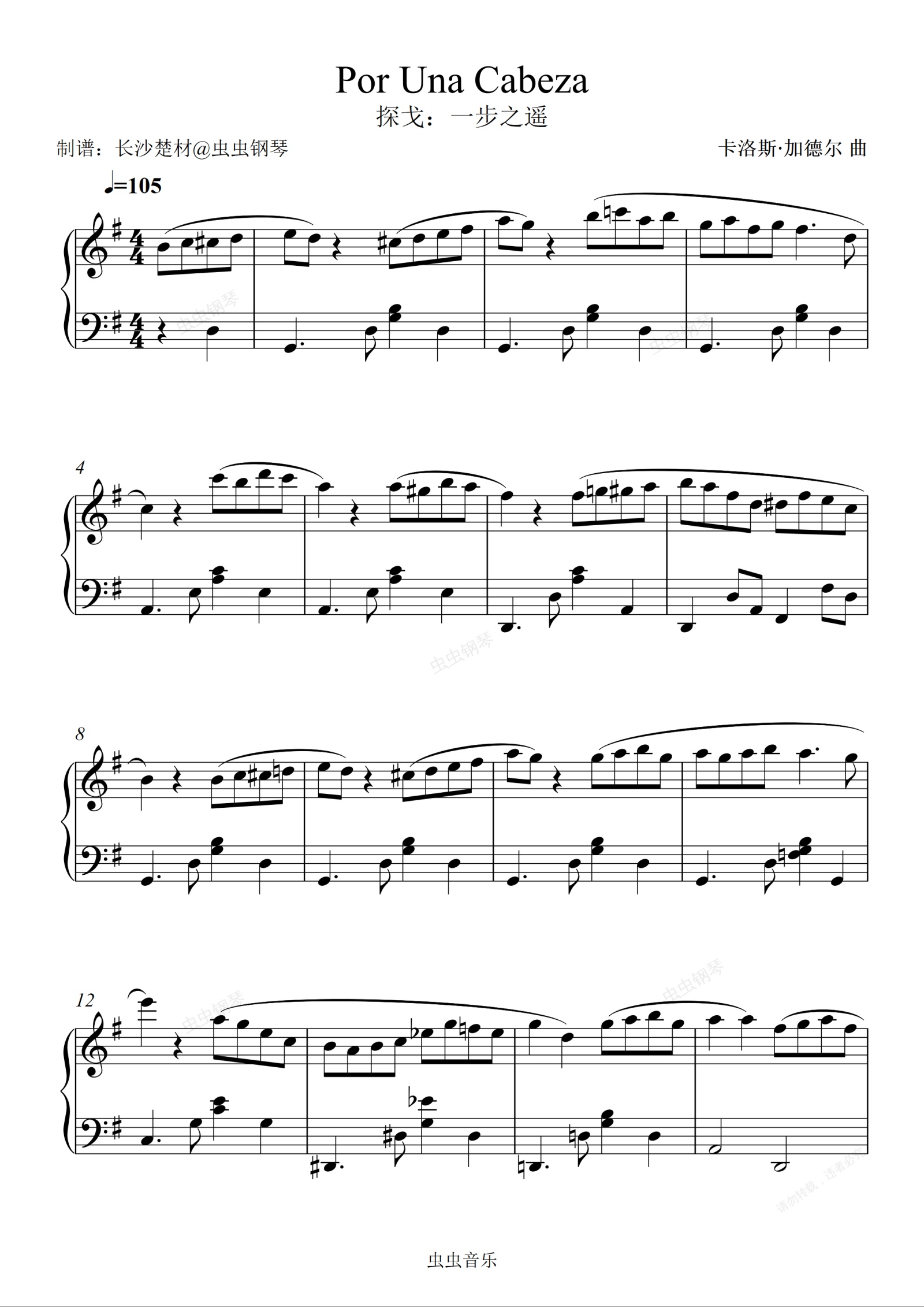 钢琴谱:一步之遥(闻香识女人)Por Una Cabeza超燃乐队伴奏版