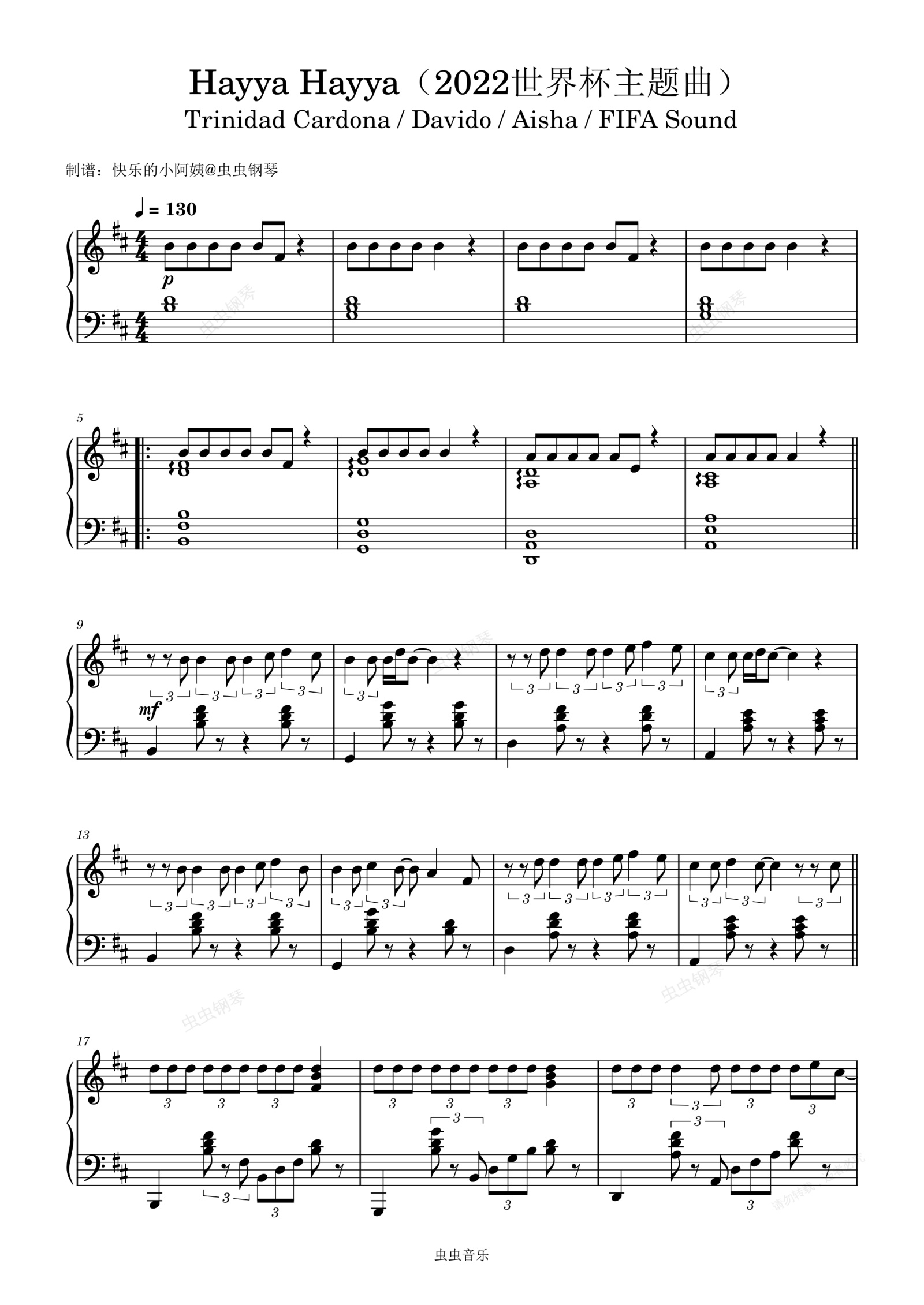 钢琴谱:Hayya Hayya(2022世界杯主题曲)
