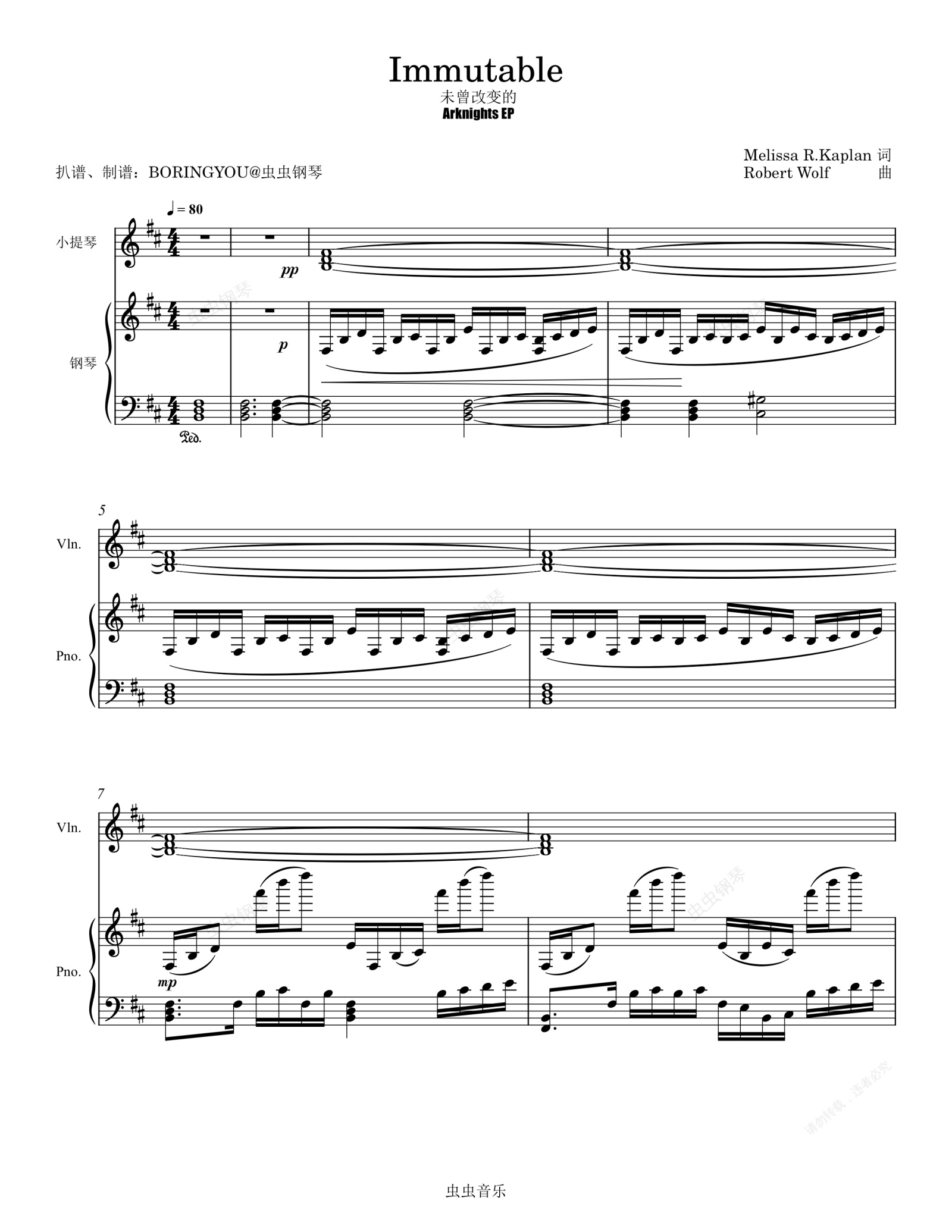 钢琴谱:明日方舟凯尔希EP - 《Immutable(未曾改变的)》