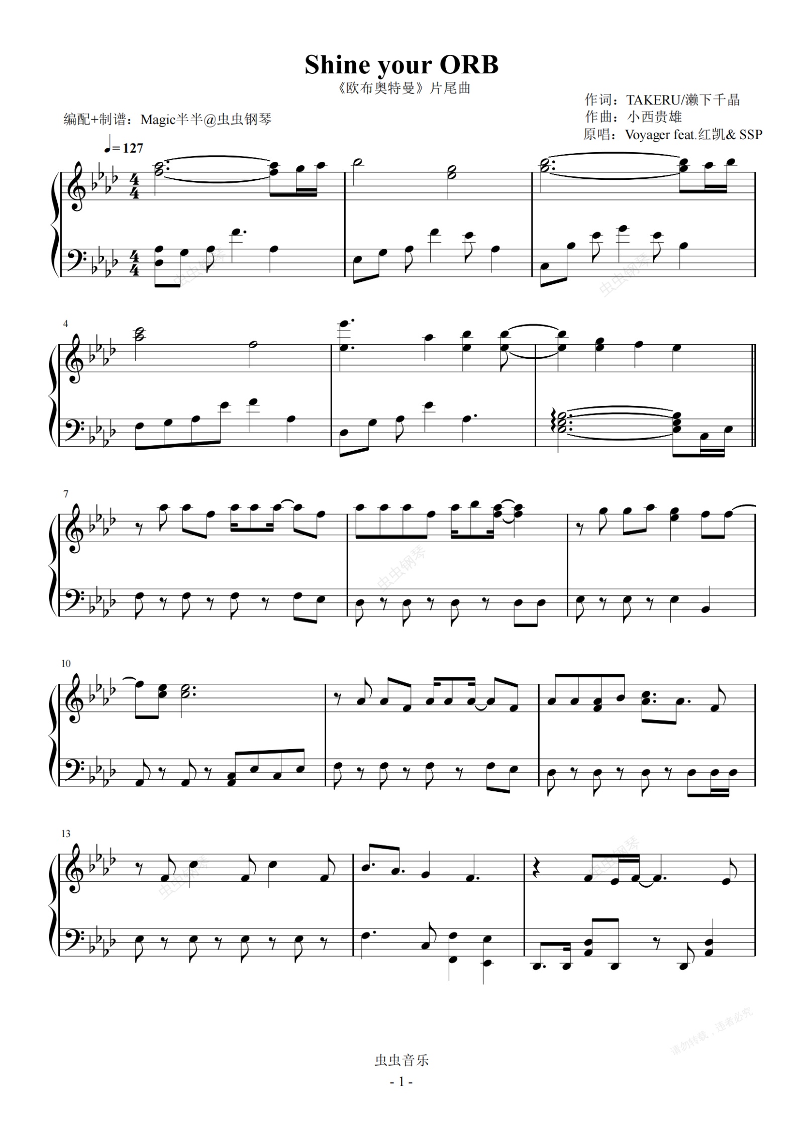 钢琴谱:Shine your ORB 欧布奥特曼ED(完整版)