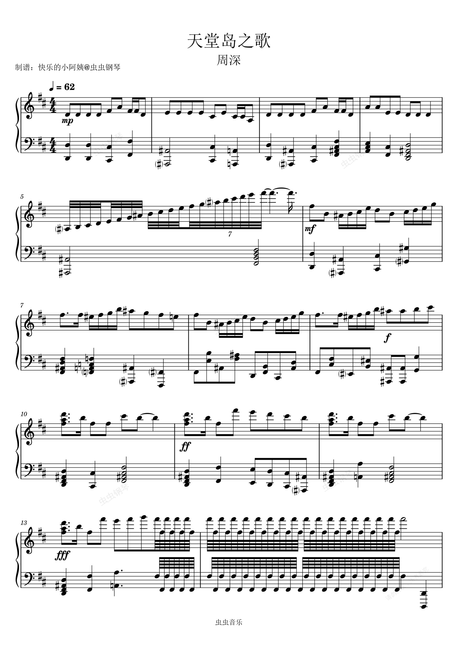 钢琴谱:天堂岛之歌-周深