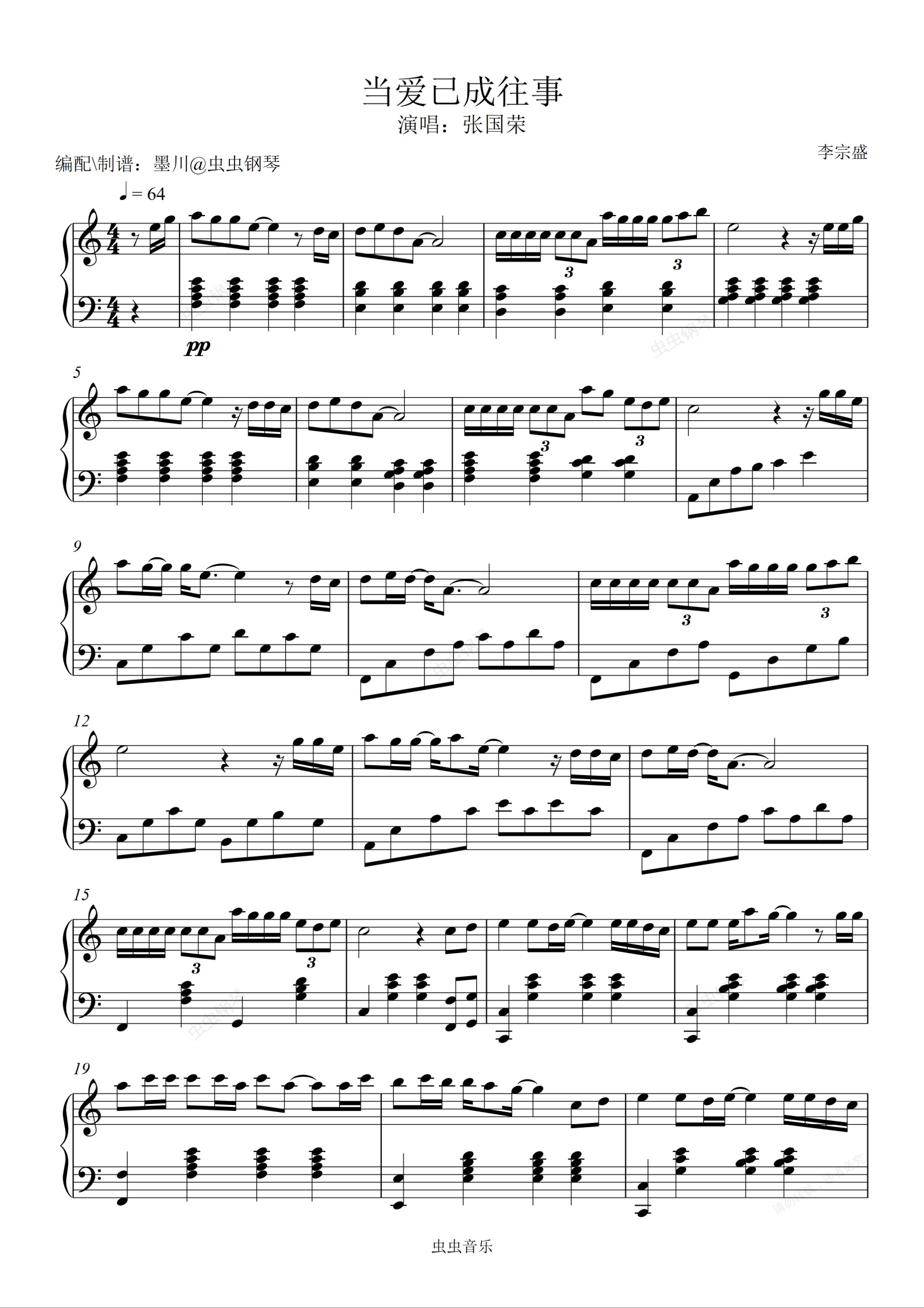 钢琴谱:当爱已成往事—张国荣—C调编配