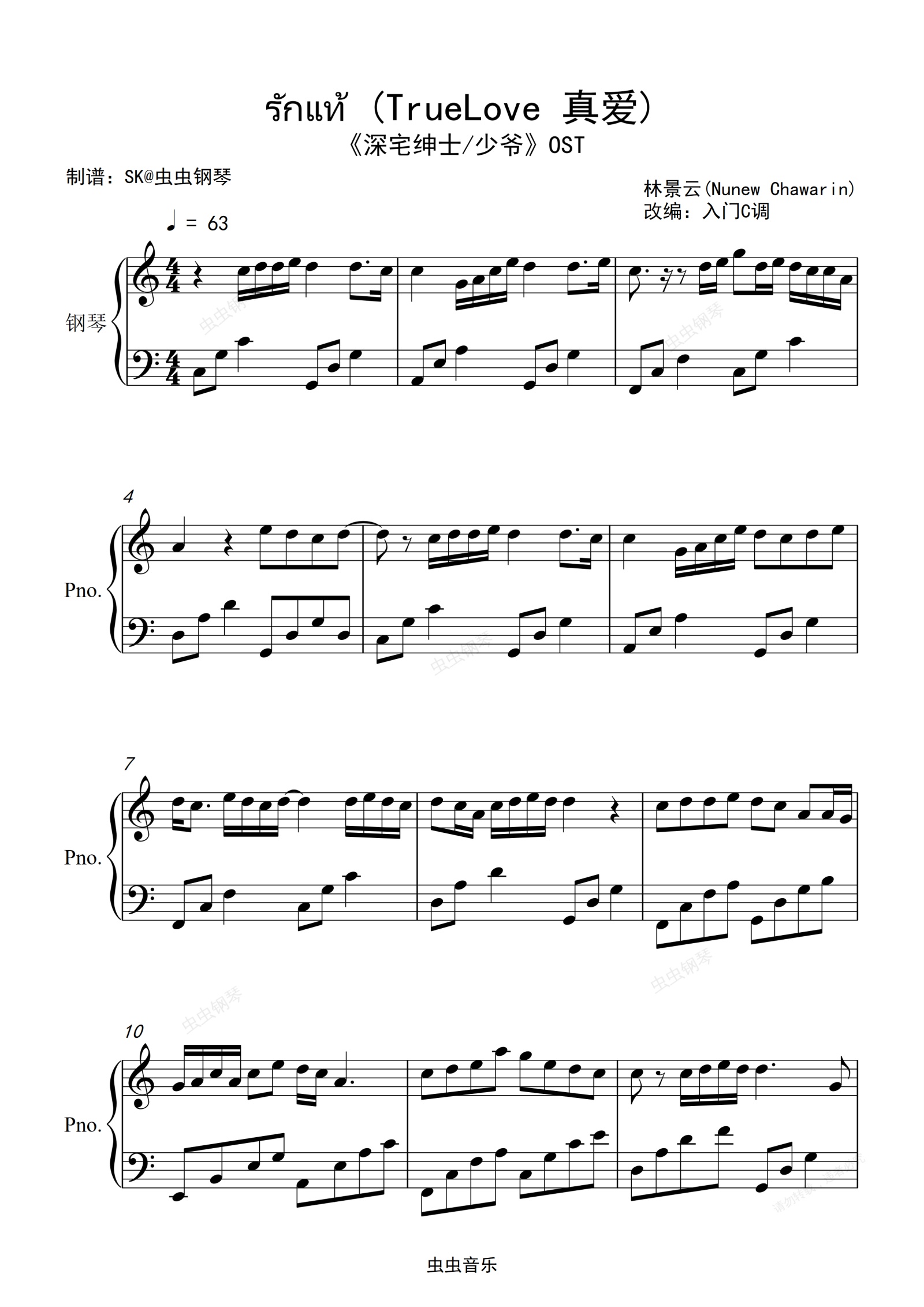 钢琴谱:《คุณชาย(断袖少爷/深宅绅士)》OST《真爱》入门C调简单版