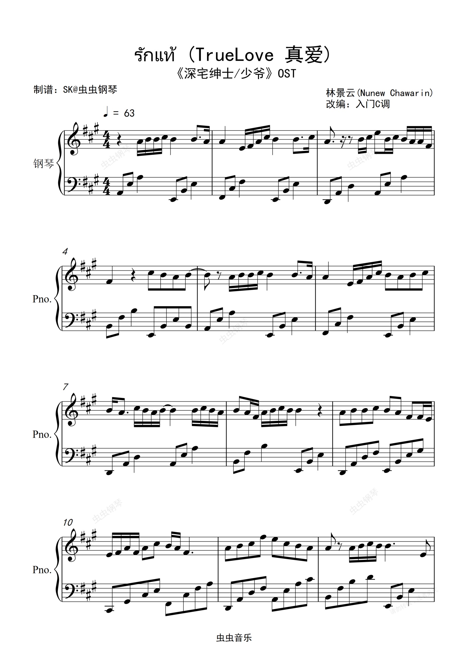 钢琴谱:《คุณชาย(断袖少爷/深宅绅士)》OST《รักแท้/True Love/真爱》原调简单版