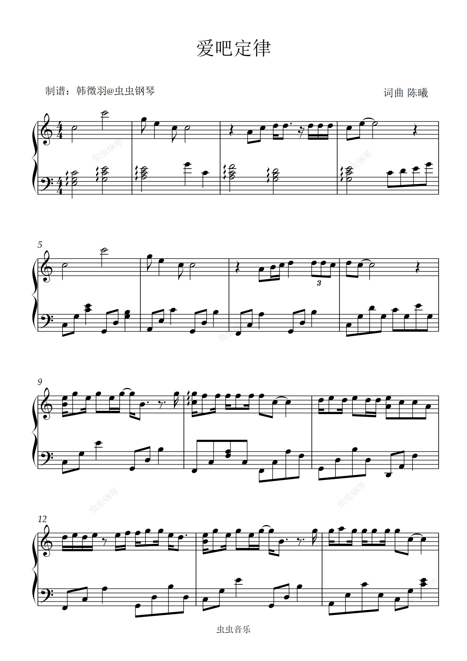 钢琴谱:爱吧定律 郁可唯 原调C调 电视剧《爱的二八定律》插曲