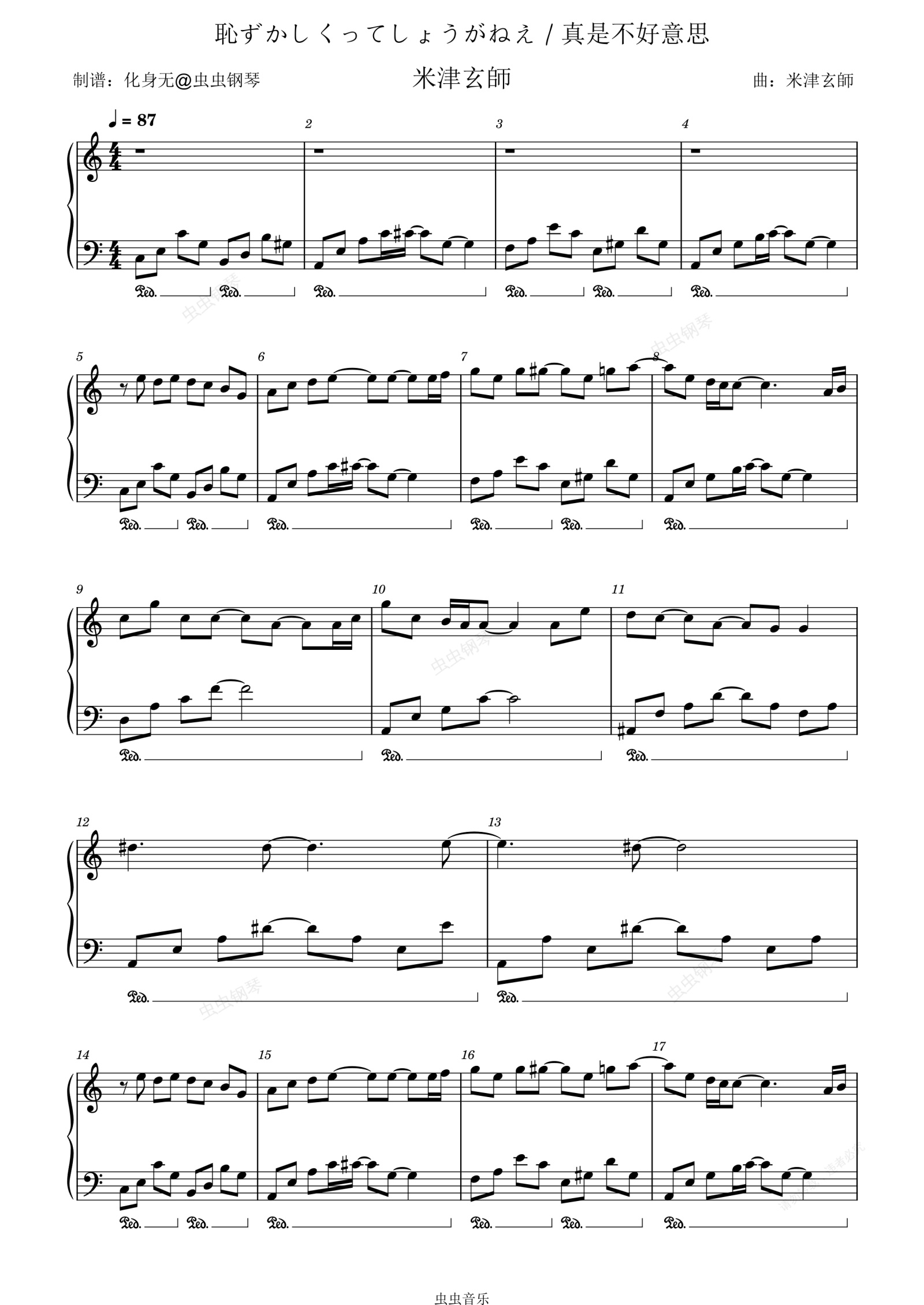 钢琴谱:恥ずかしくってしょうがねえ / 真是不好意思