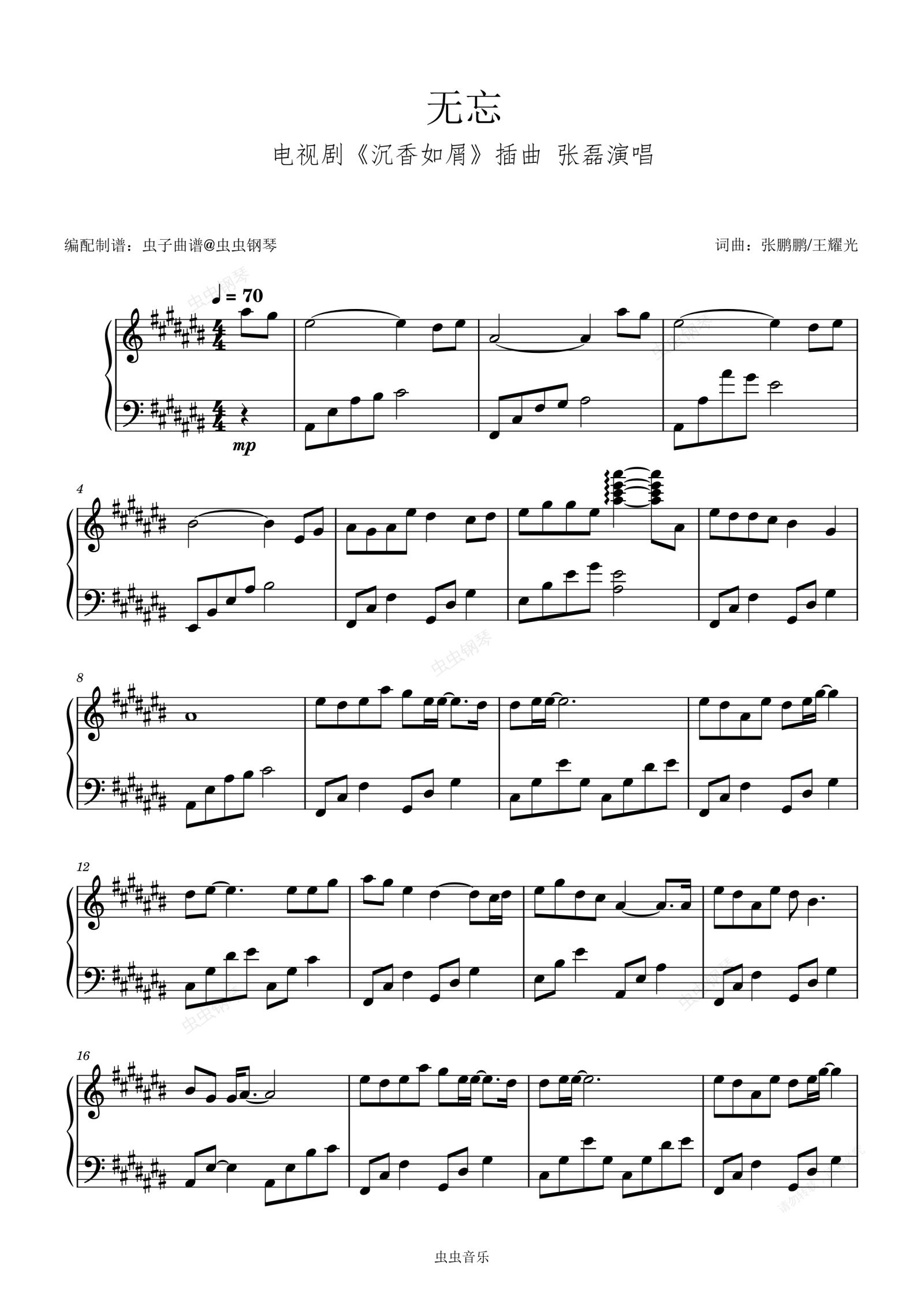 钢琴谱:无忘 - 《沉香如屑》插曲 原调简单编配