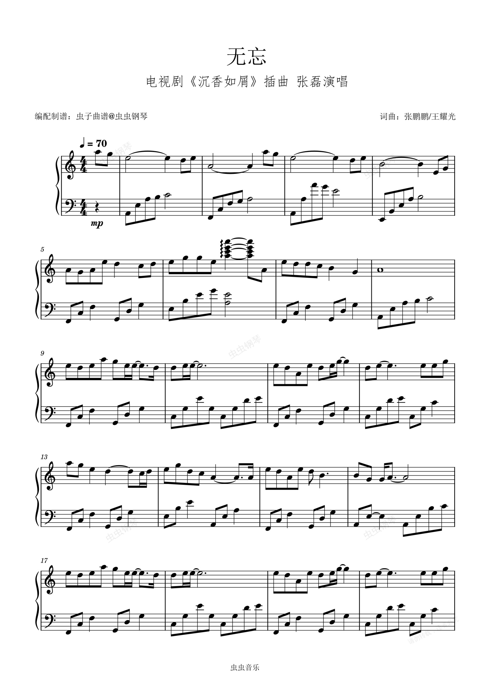 钢琴谱:无忘 - 《沉香如屑》插曲 选C调简单编配