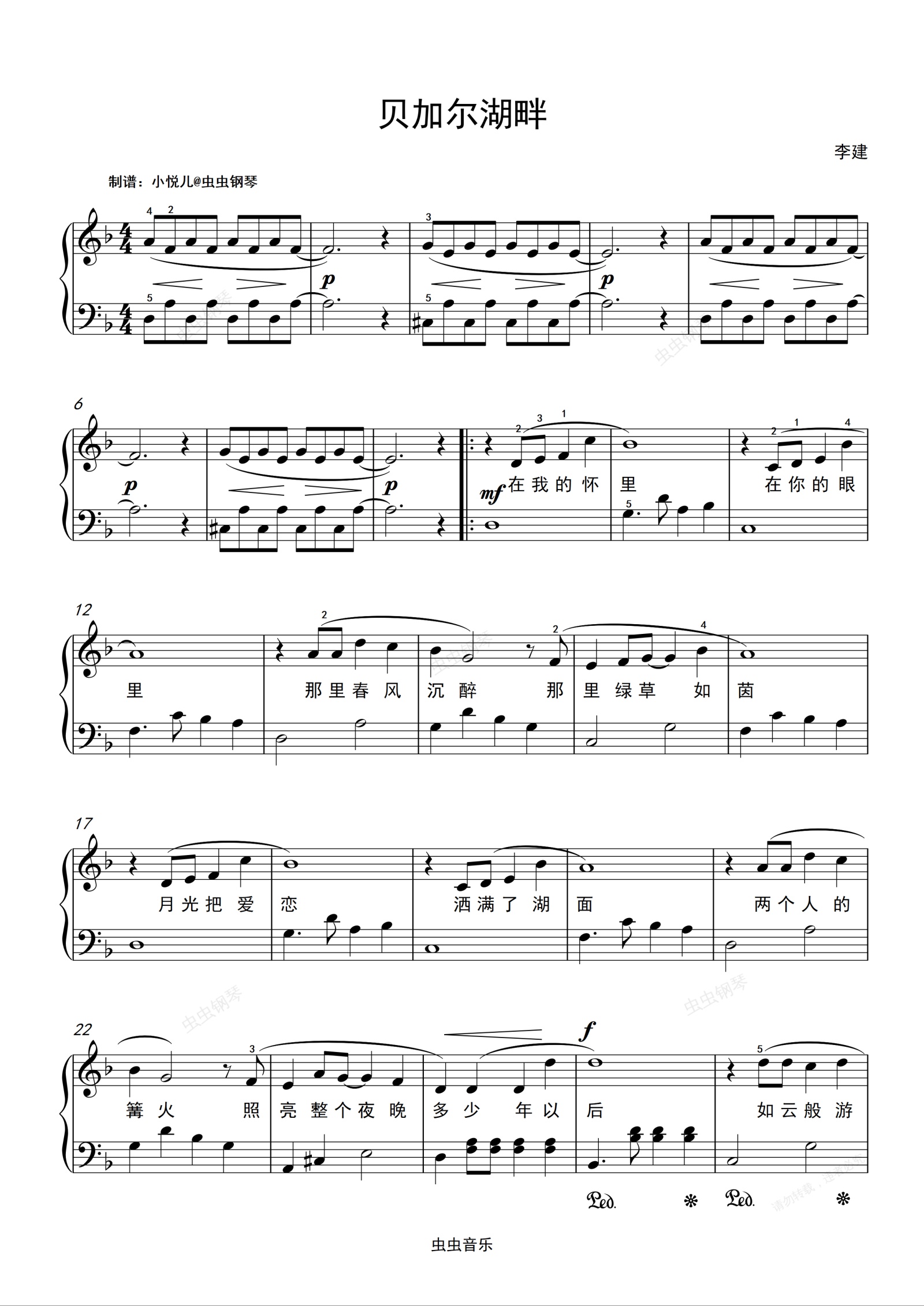 钢琴谱:贝加尔湖畔