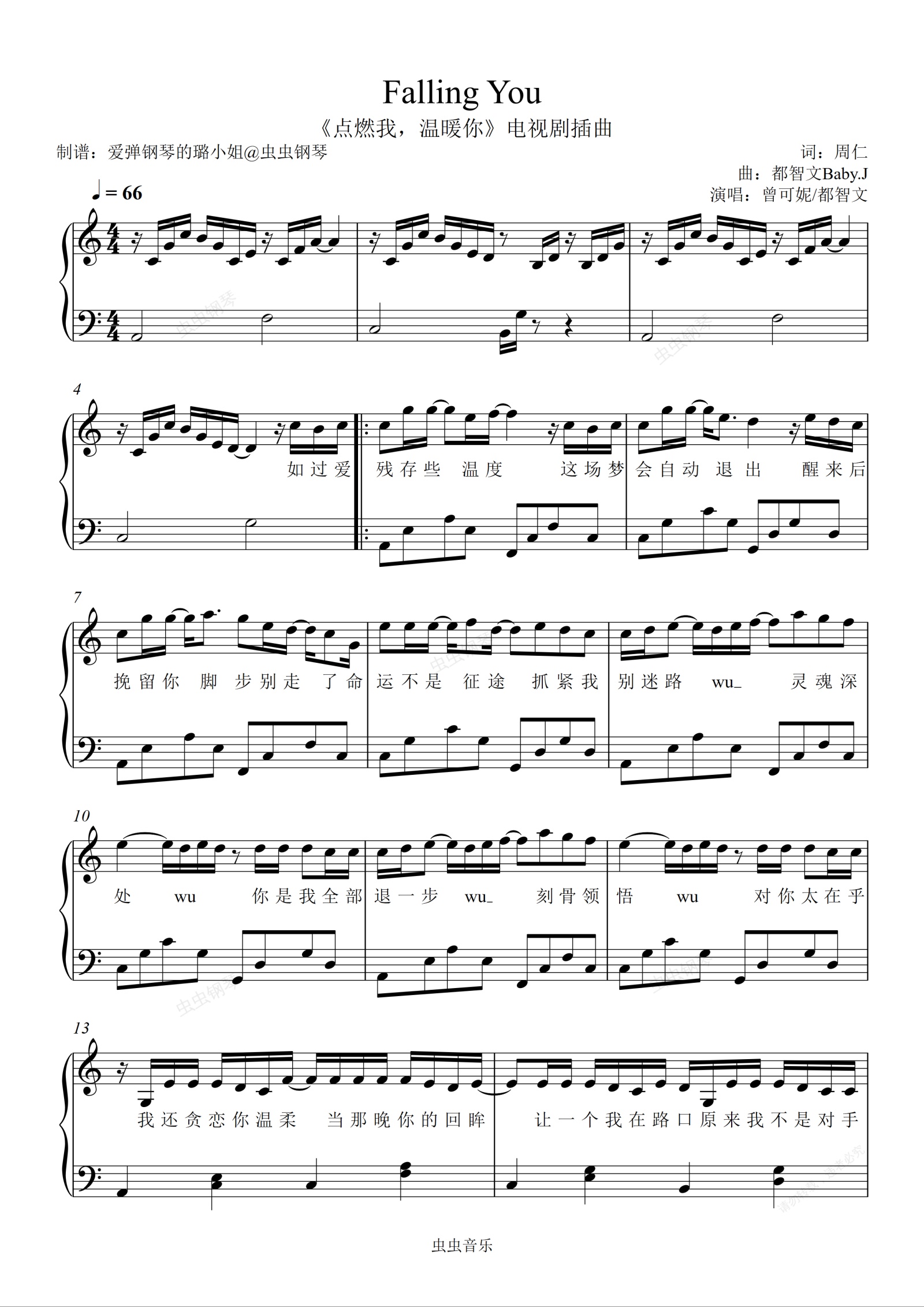 钢琴谱:Falling You - 《点燃我,温暖你》插曲 - C调简单版 - 附歌词