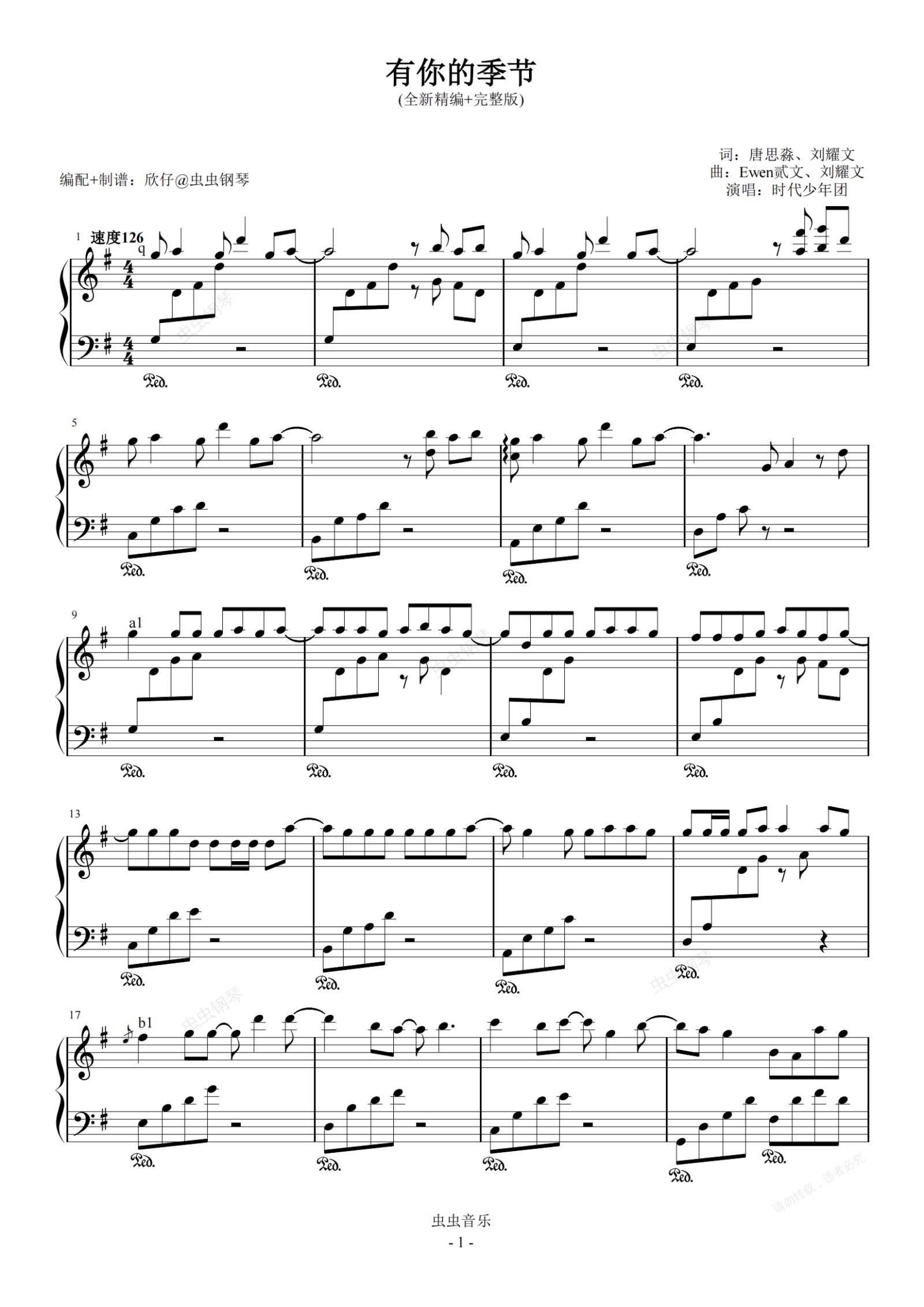 钢琴谱:时代少年团-G《有你的季节》(全新精编+完整版)