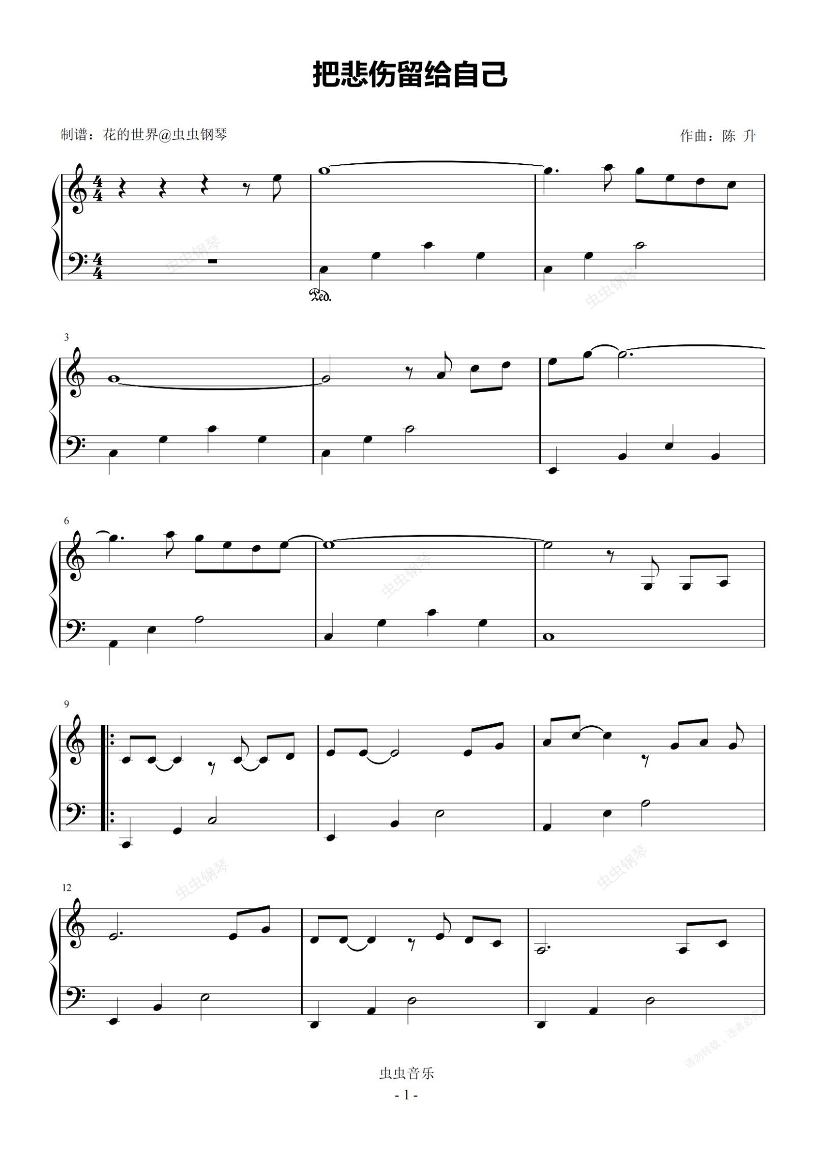 钢琴谱:把悲伤留给自己 C调简易版 陈升